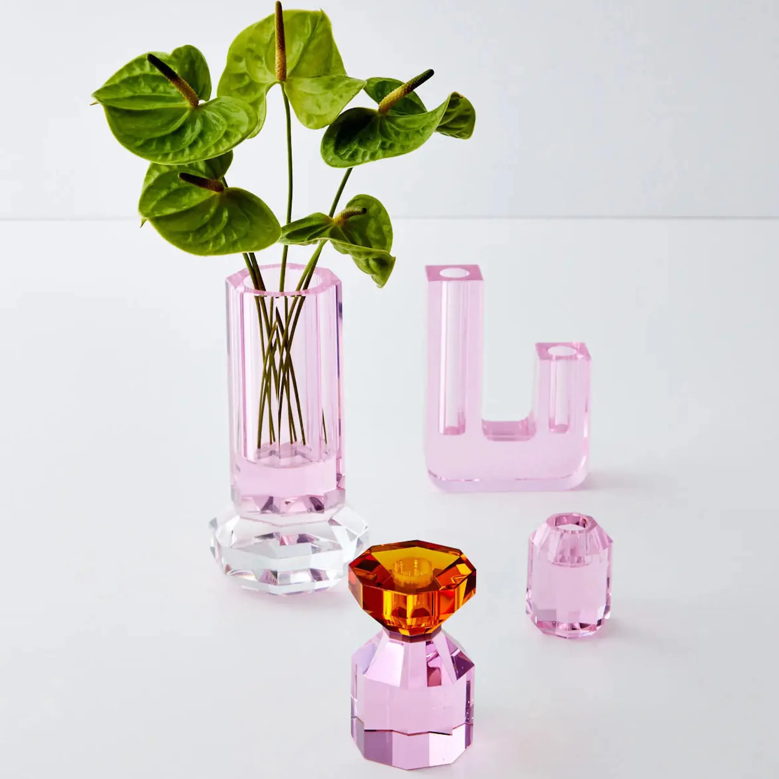 Bevel Crystal Taper Candle Holder Amber Pink | GigiandTom New