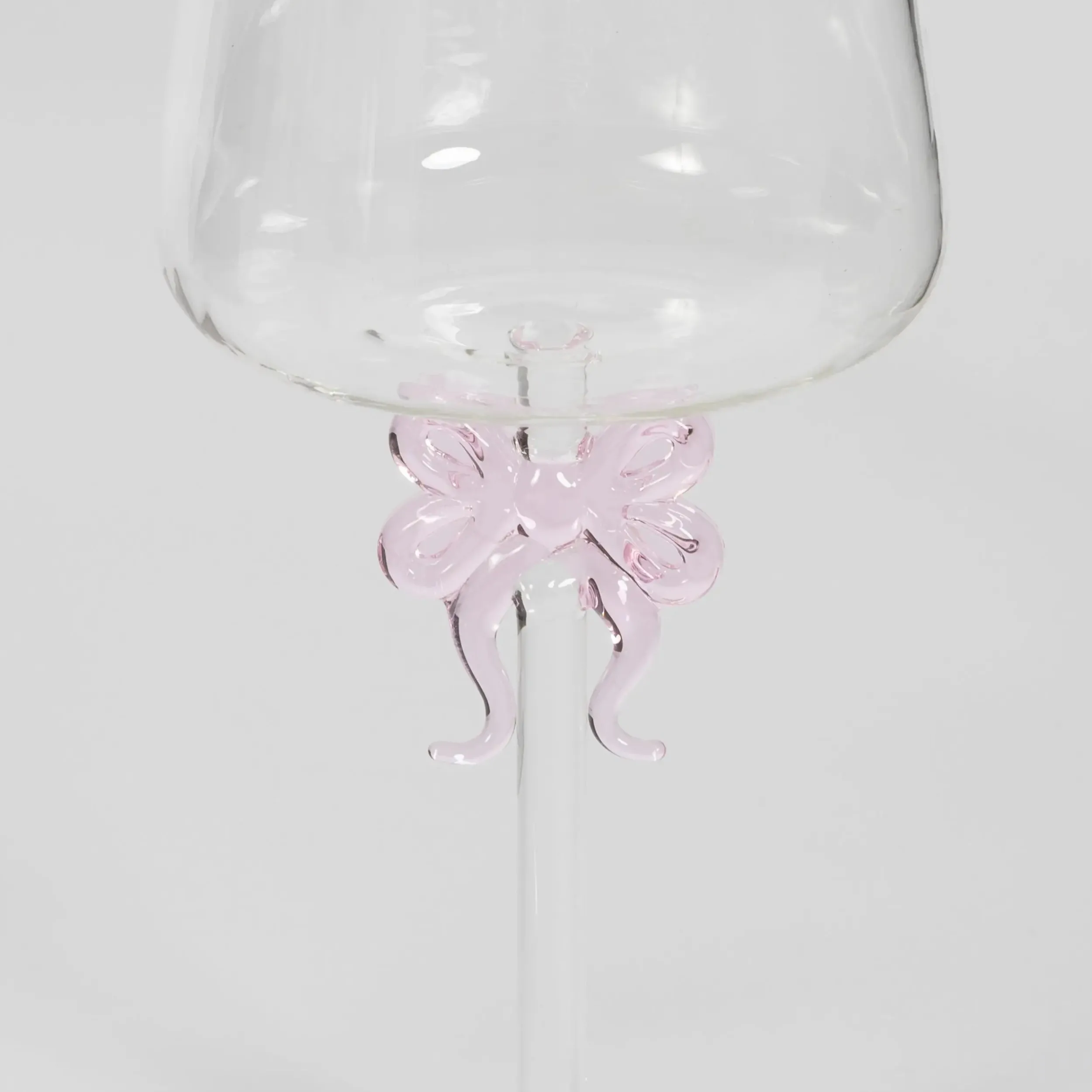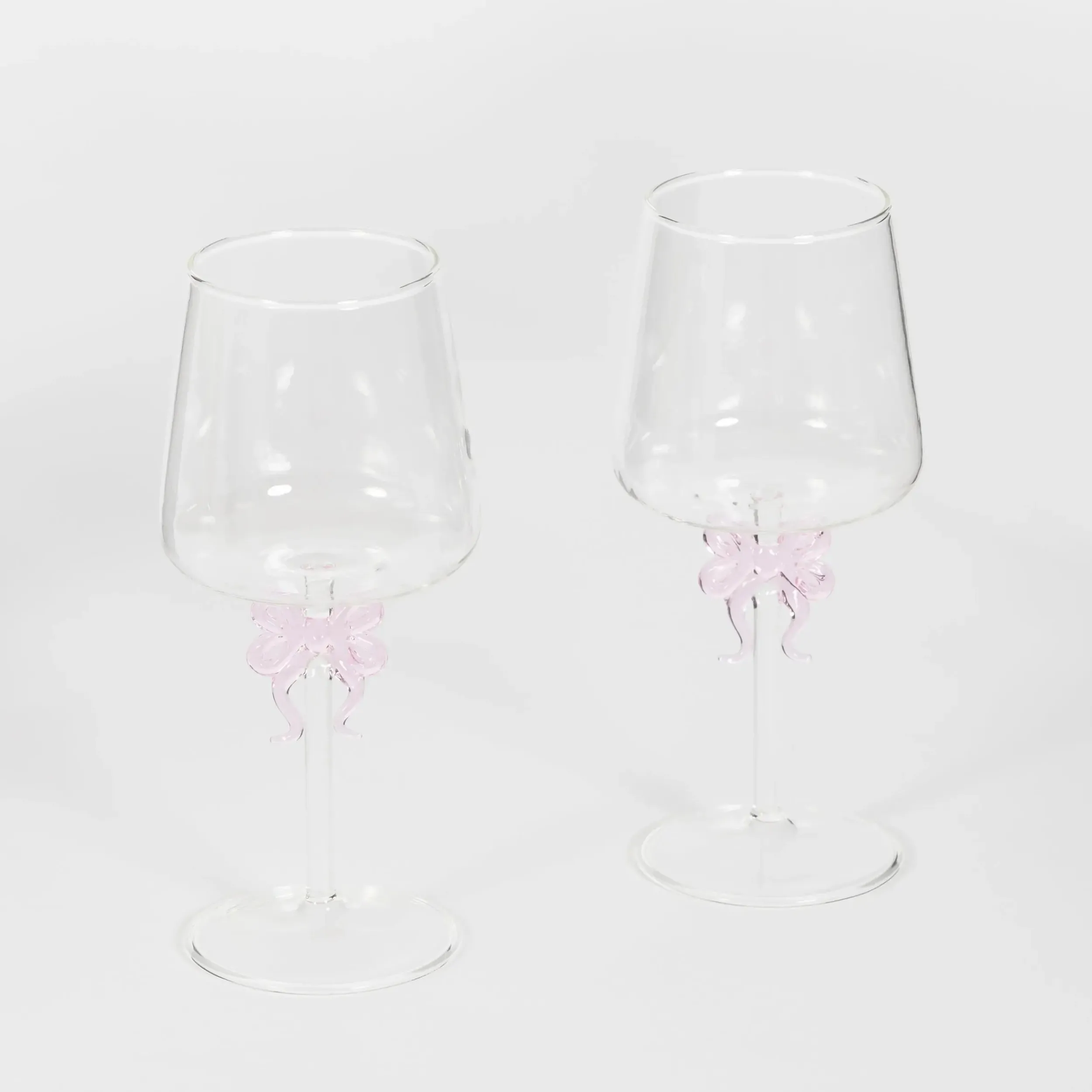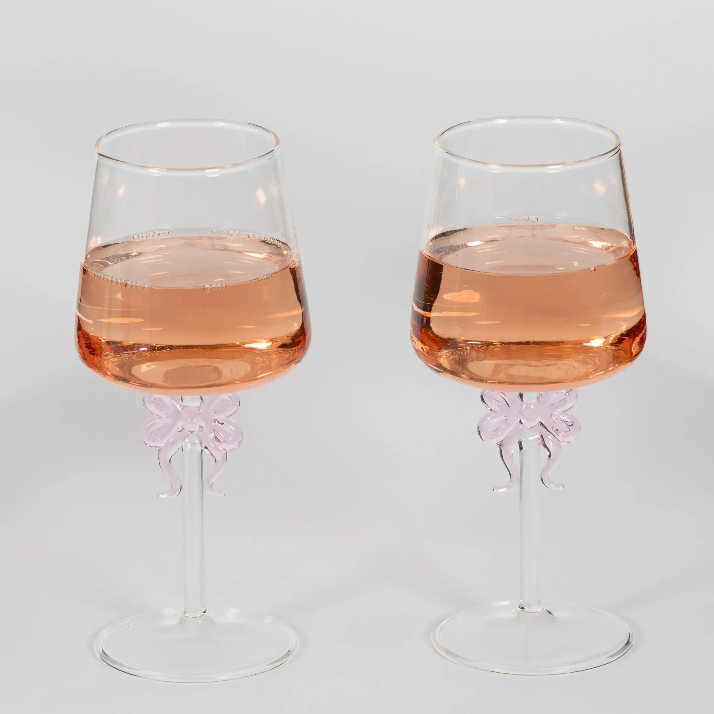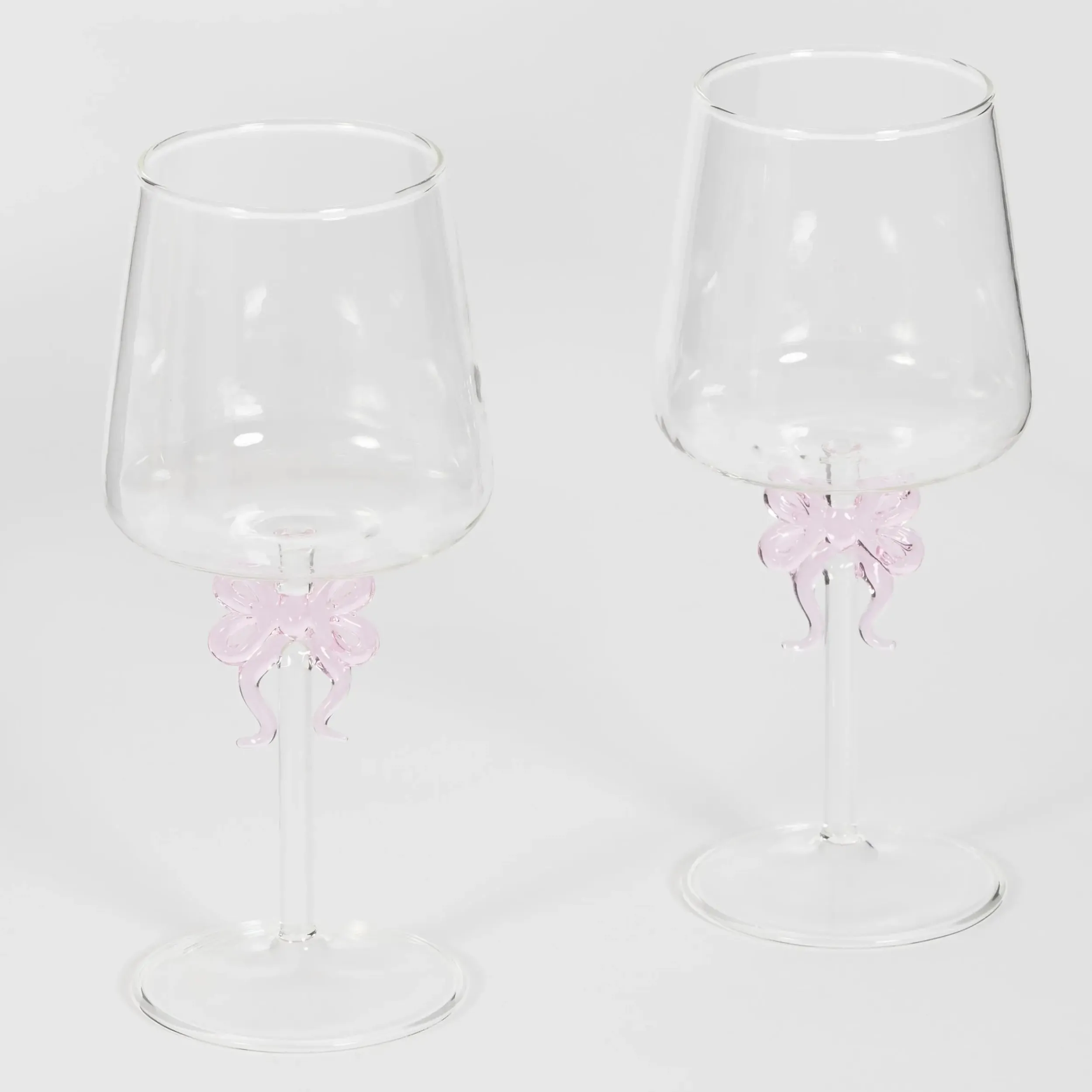 Bow Wine Glass Clear Set Pink | GigiandTom Outlet