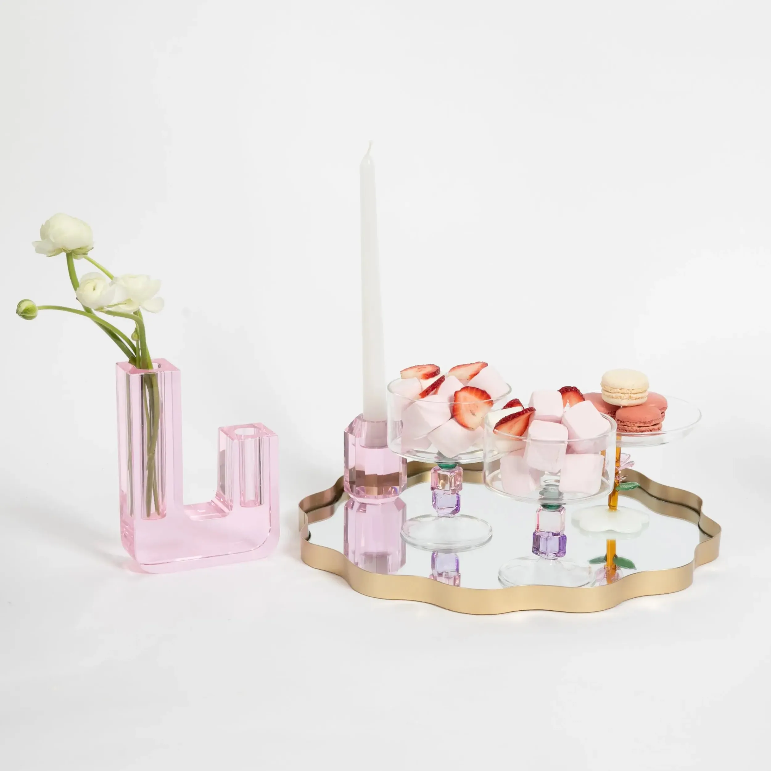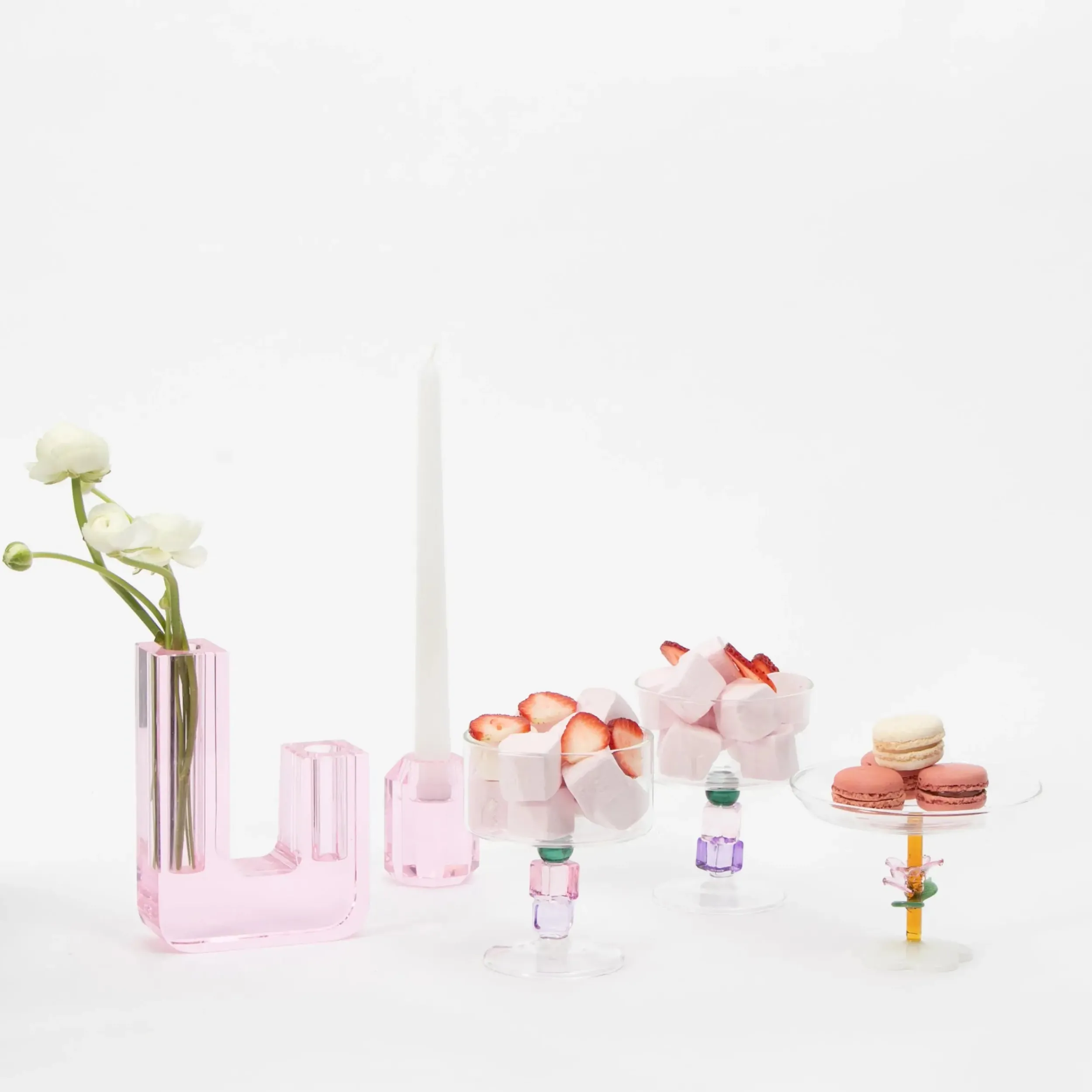 Style cocktails and desserts in a Cocktail Glass set inspired by precious gemstones with this striking set of 2 cocktail coupes with pink and purple coloured glass stem reminiscent of amethyst and quartz.