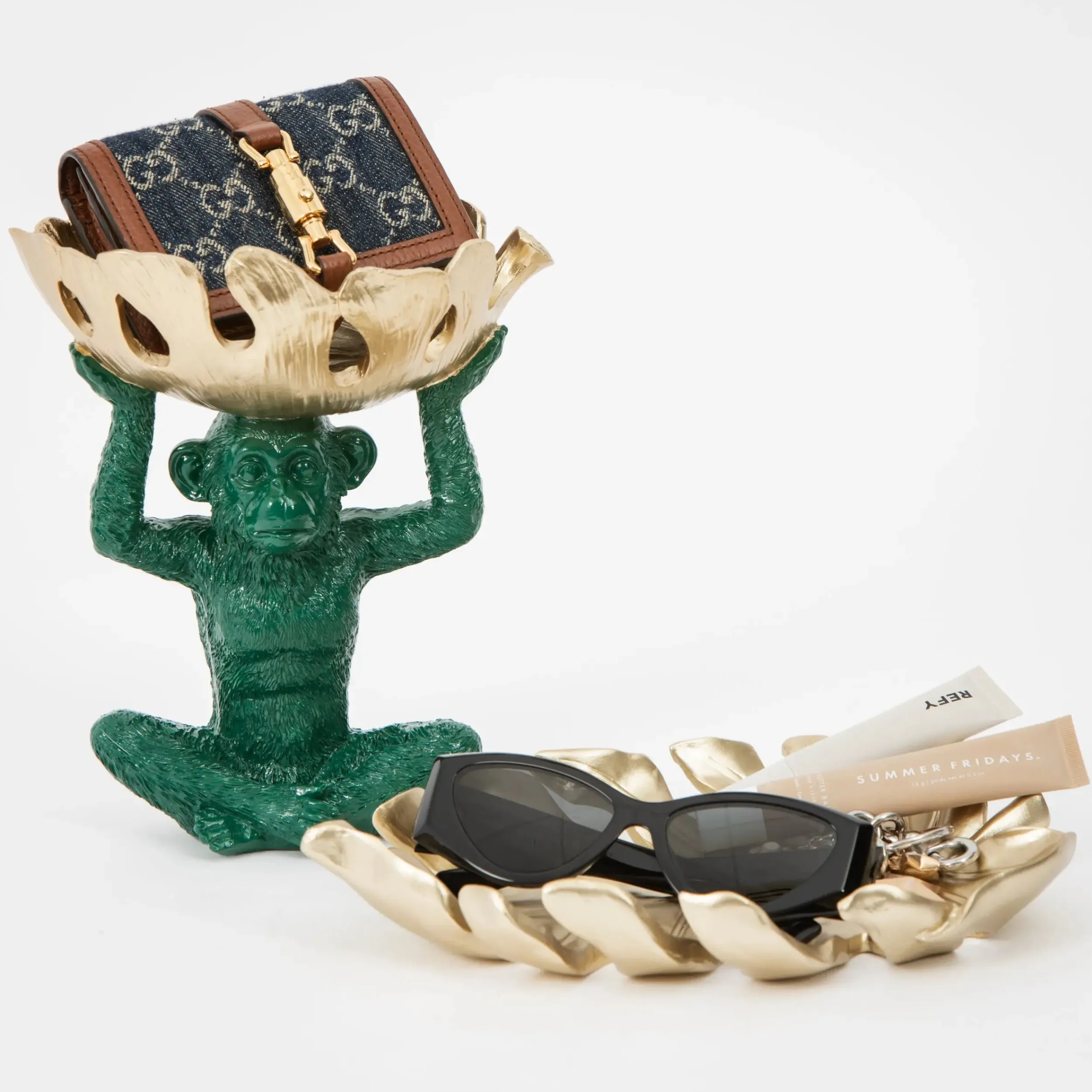 Keep the post-holiday vibes high with this palm-shaped resin Decorative Tray in durable, lightweight and easy to clean gold painted resin in trending, tropical Monstera leaf shape.