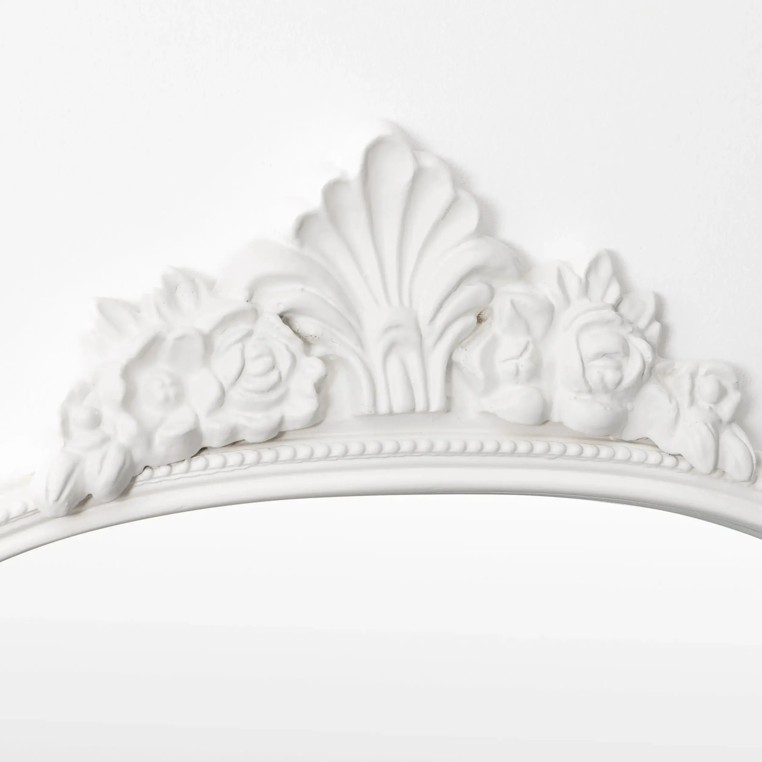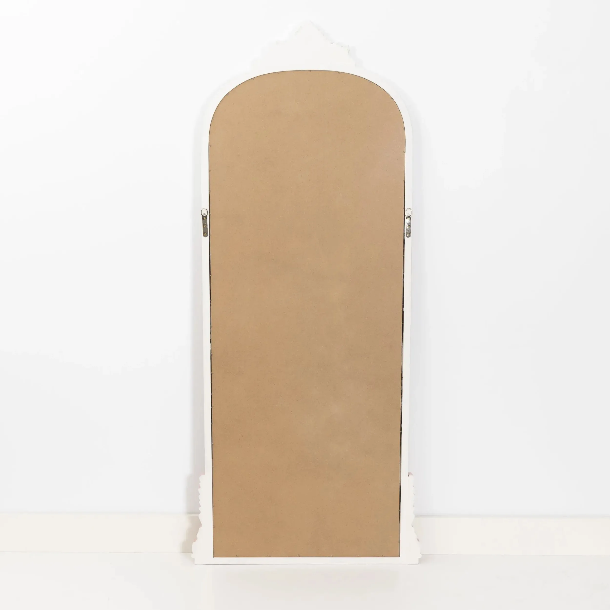 Channel regency romance with this Full Length Wall Mirror in a striking white and pink painted timber frame featuring Rococo style cornicing atop a classic arched shape. The thin timber frame profile maximises the mirror to cleverly reflect light and enhance smaller spaces.