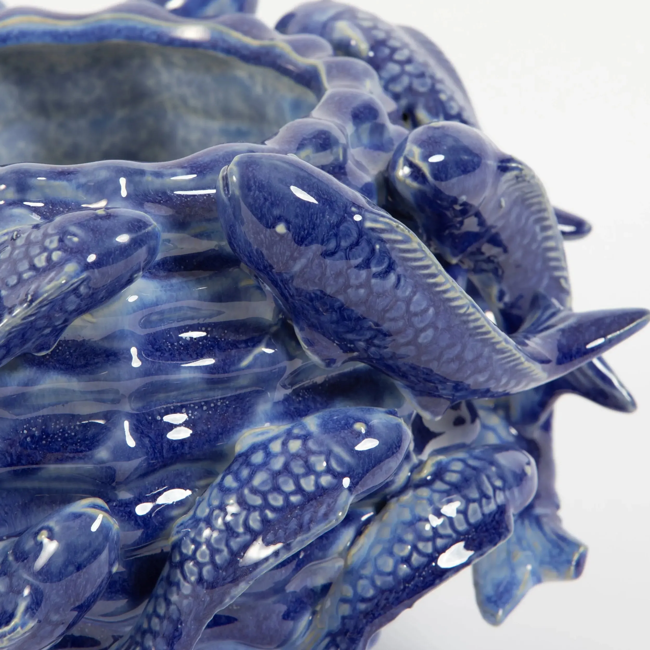 Enhance the Zen-like state of your home sanctuary with this mythical Ceramic Vase celebrating the serene nature of Japanese Koi fish in cool shades of blue sculptural, glazed ceramic.