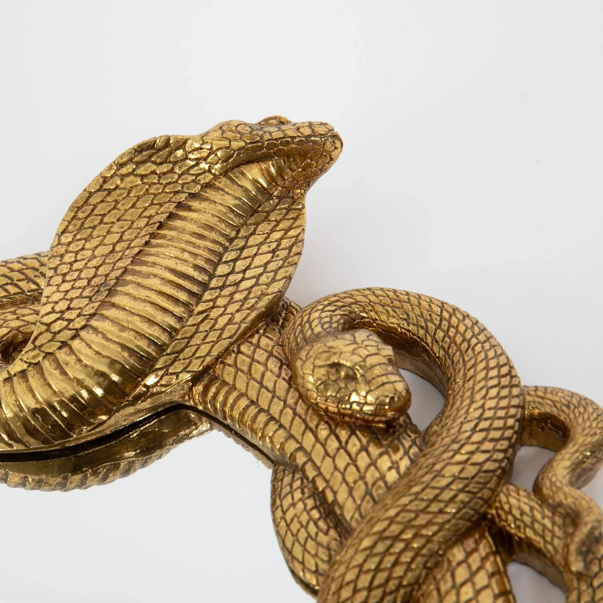 No need to be shy when it comes to selecting your next Wall Mirror. Let your inner and outer beauty shine, reflected in this oval-shaped resin wall mirror with a luxe, golden serpent frame that adds drama to your interiors.