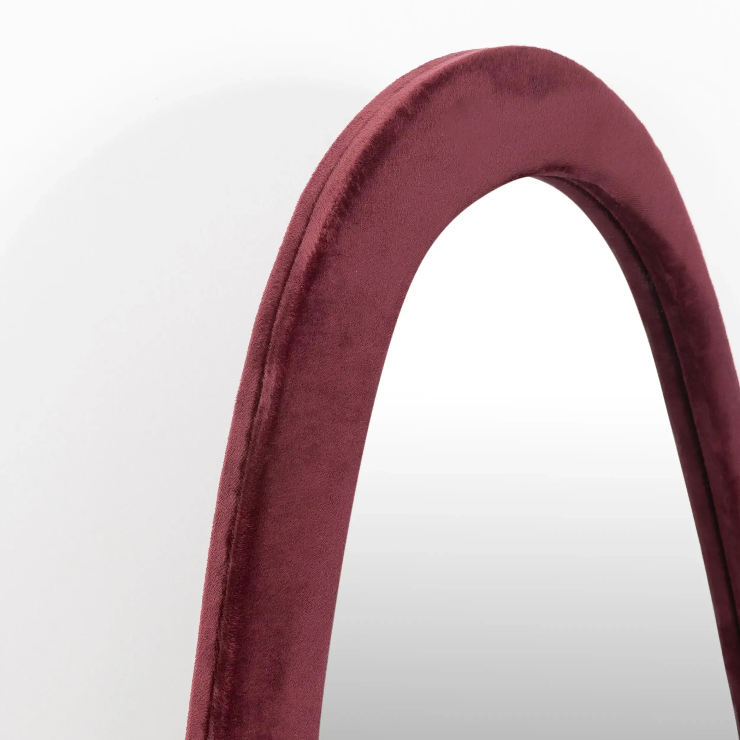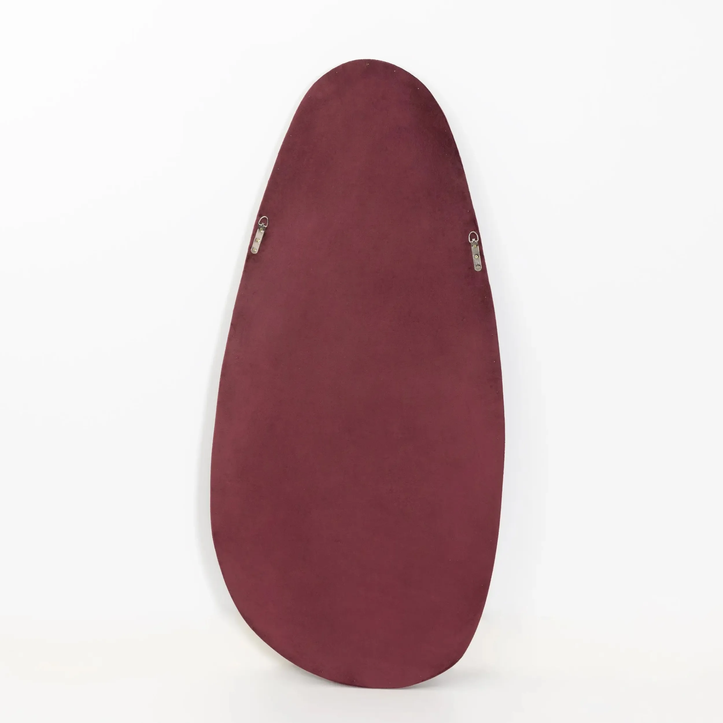 This organic, shapely Full Length Velvet Wall Mirror in rich oxblood coloured velvet upholstery frame adds a luxurious opulence to your space while reflecting light and enhancing small spaces. The asymmetrical oval shape adds a modern look; the perfect backdrop for your next selfie.
