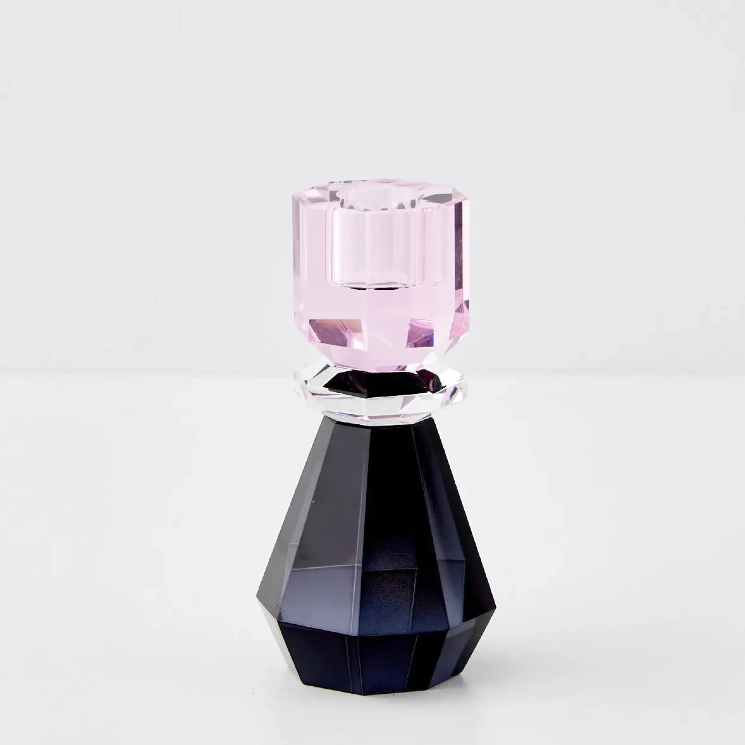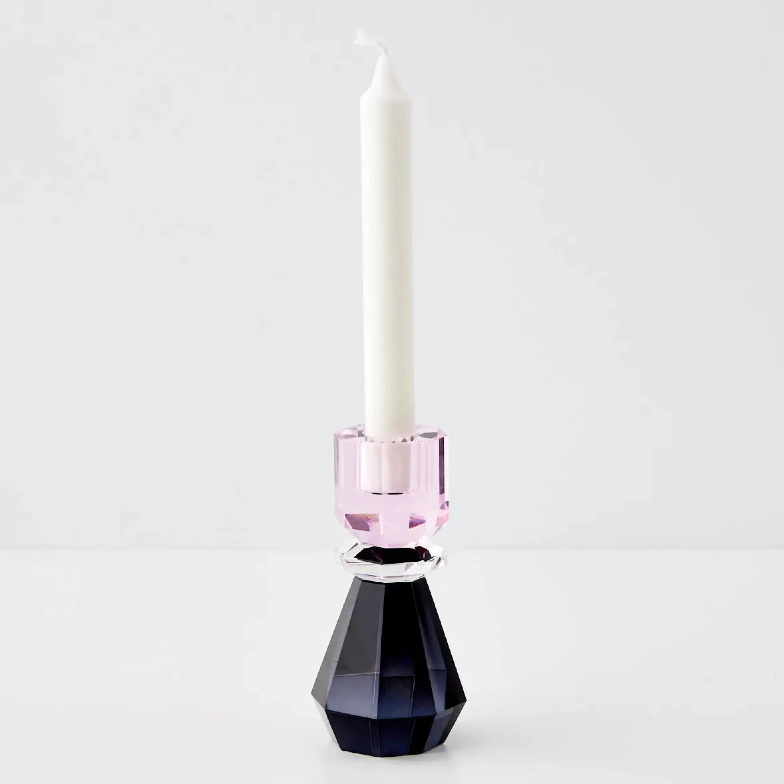 Exude queen energy into your interiors with this strikingly cut crystal taper Candle Holder in bold black and innocent pink. Combining moody shades of black and delicate feminine crystal cut lead-free glass, this weighty candle holder easily doubles as a decorative item or paper weight to elevate bedrooms, desks or dining settings. Expertly crafted from crystal glass, this material offers superior clarity and brilliance compared to non-crystal glass due to its high refractive index while the addition of minerals strengthens the material resulting in a showstopping piece that’s less prone to chipping.