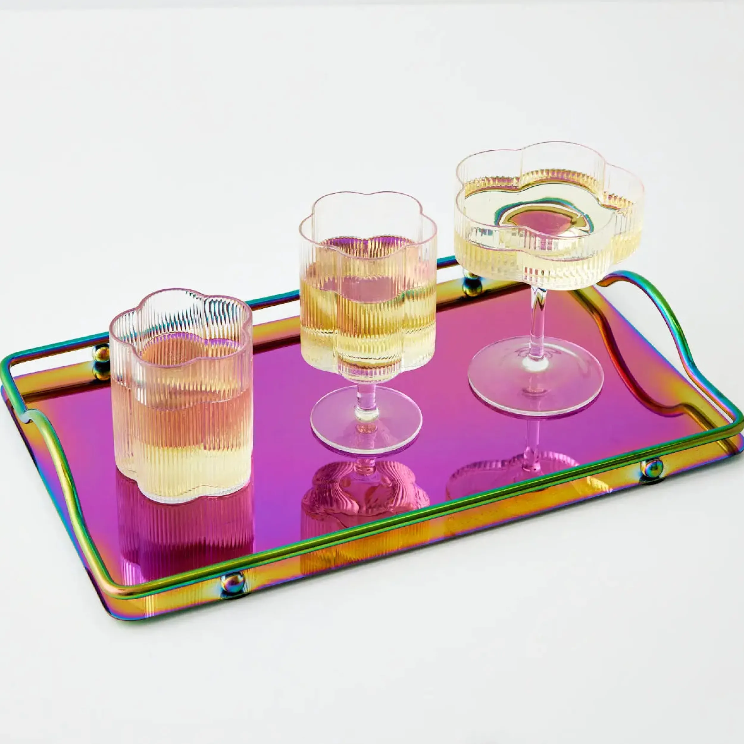 From bottomless brunch to aperitivo hour, this unique Wine Glass design elevates the classic glass from functional to fashionable with tactile ribbed glass and a five-petal floral shape.