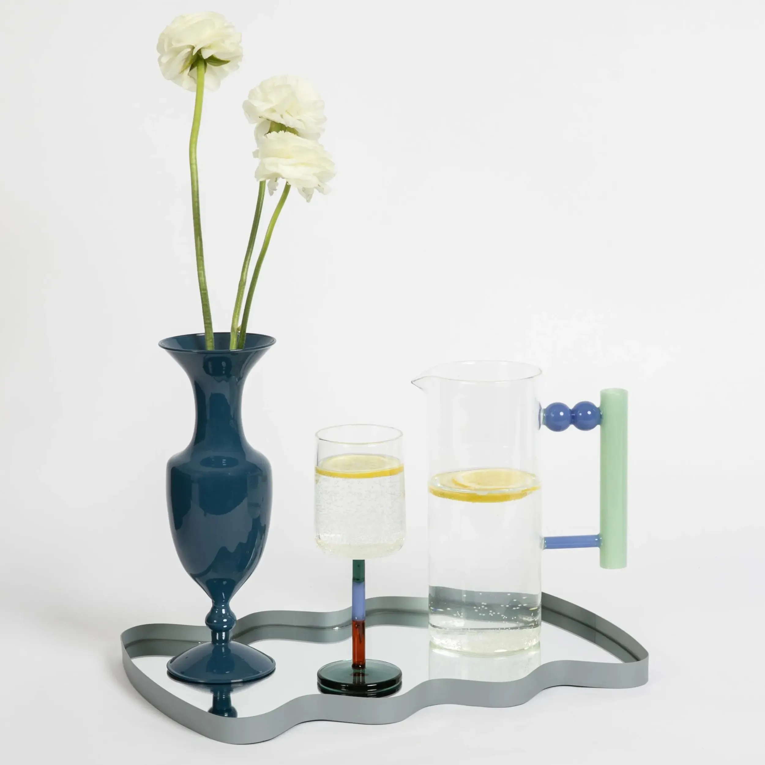 Update your bedroom, bathroom or kitchen styling with this modern, wavy mirrored Decorative Tray crafted from sturdy and attractive blue-hued metal. The perfect piece to display perfumes, candles and trinkets.