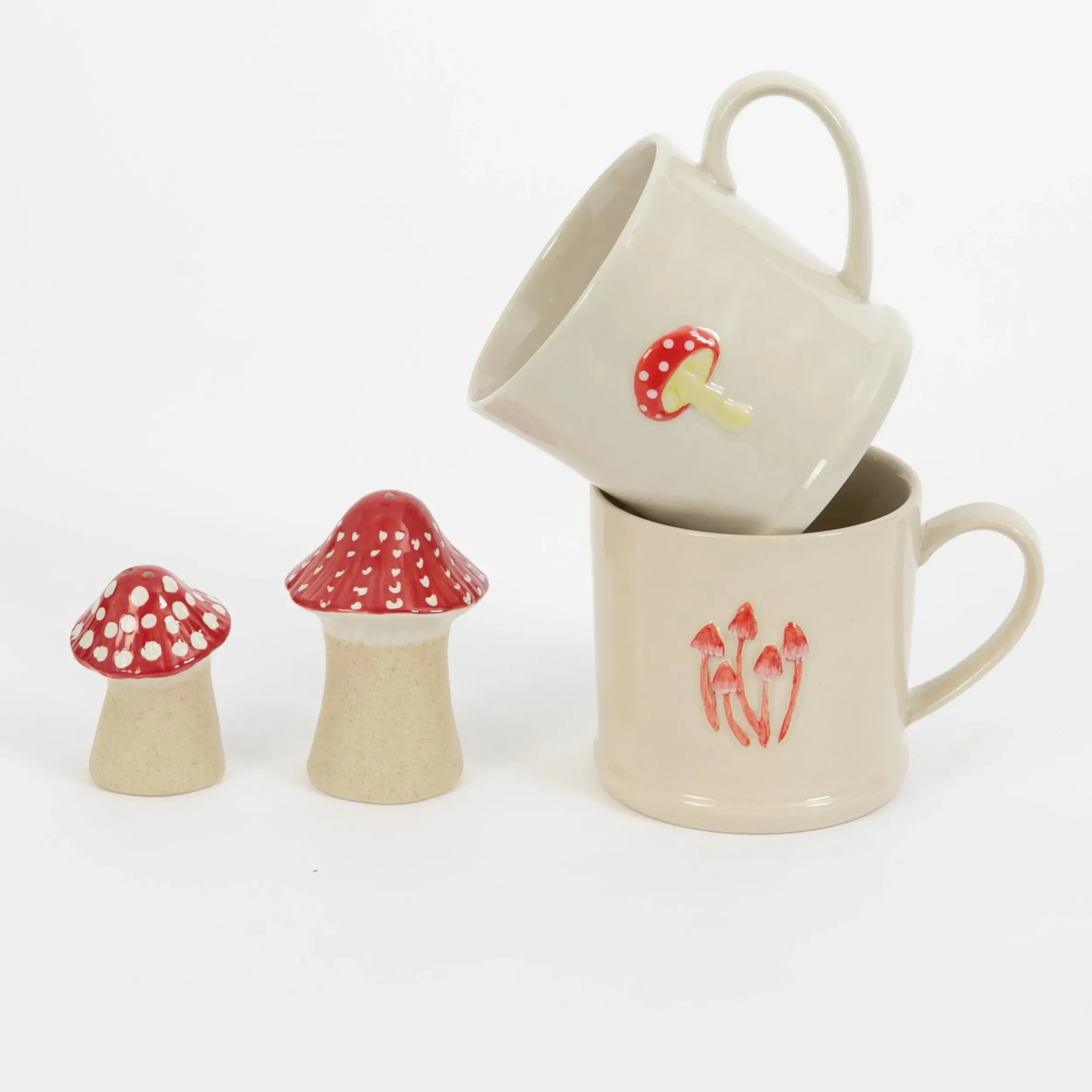 We’ve swept the forest floor for a fun and functional Salt & Pepper Shaker set to add magic to mealtimes. Enter our mushroom-shaped salt and pepper shakers in lifelike, red and white glazed ceramic.