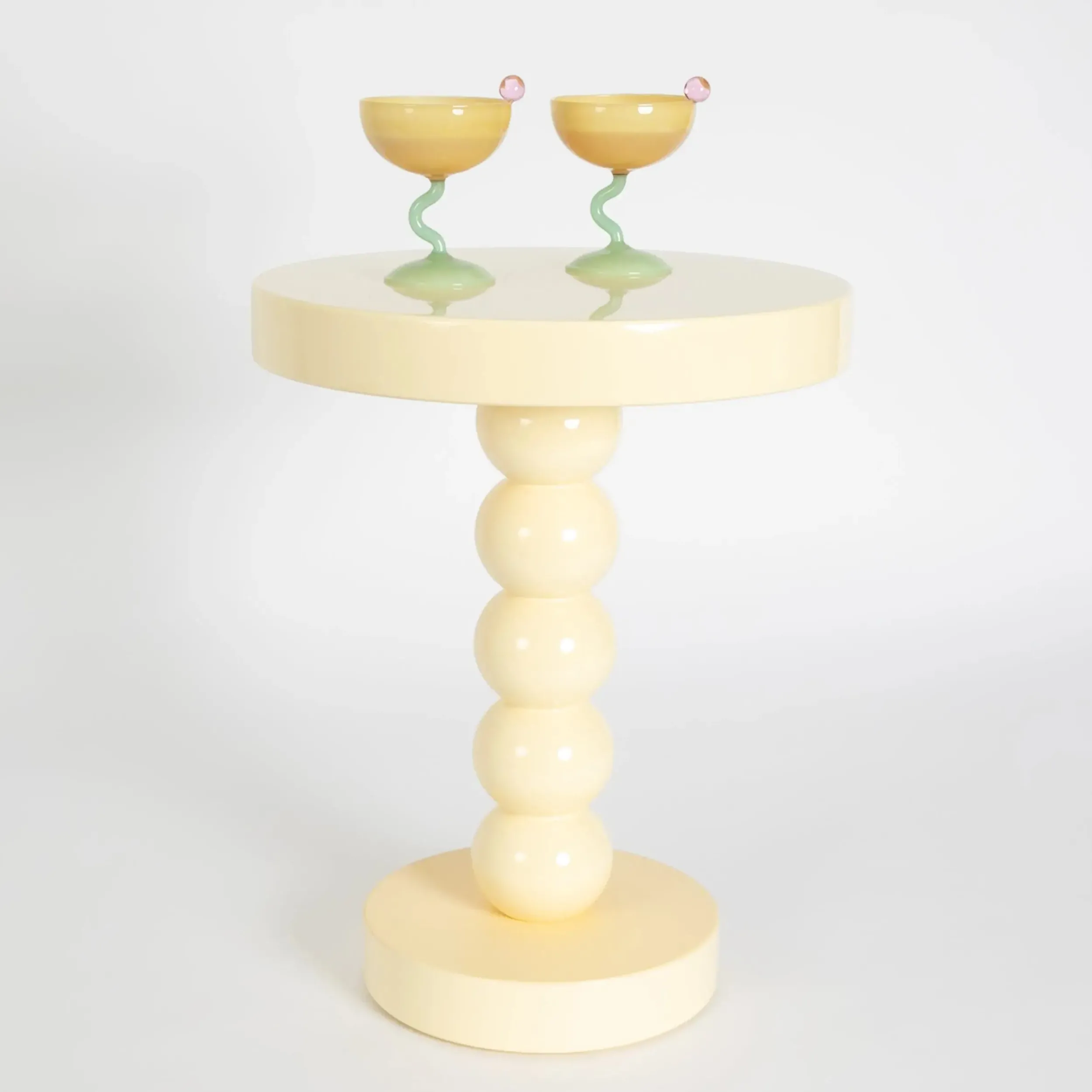 A fun approach to a classic side table, this Lacquered Side Table combines a bubble-shaped base with a high-gloss finish in classic, off white for an easy-to-style addition to home or office areas.