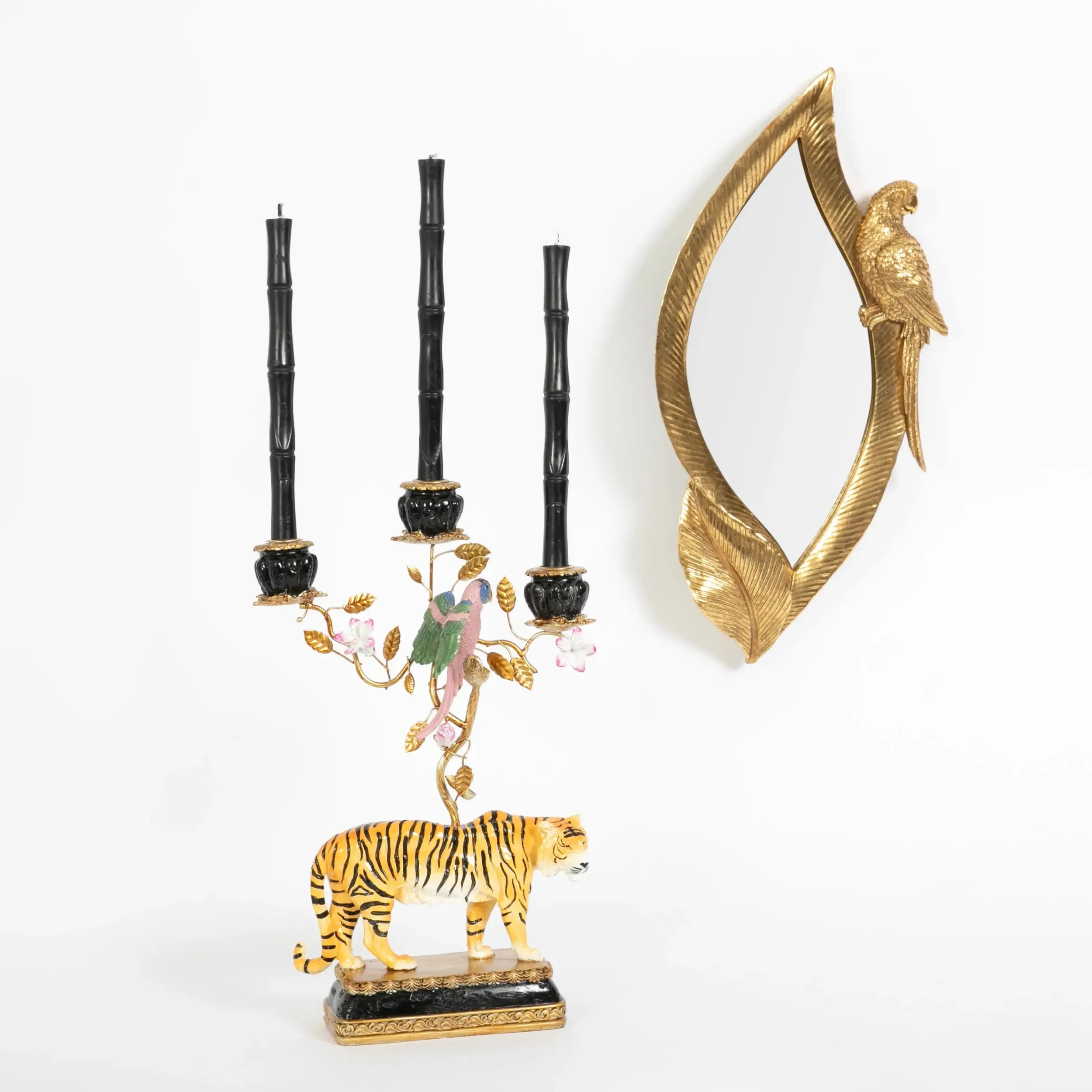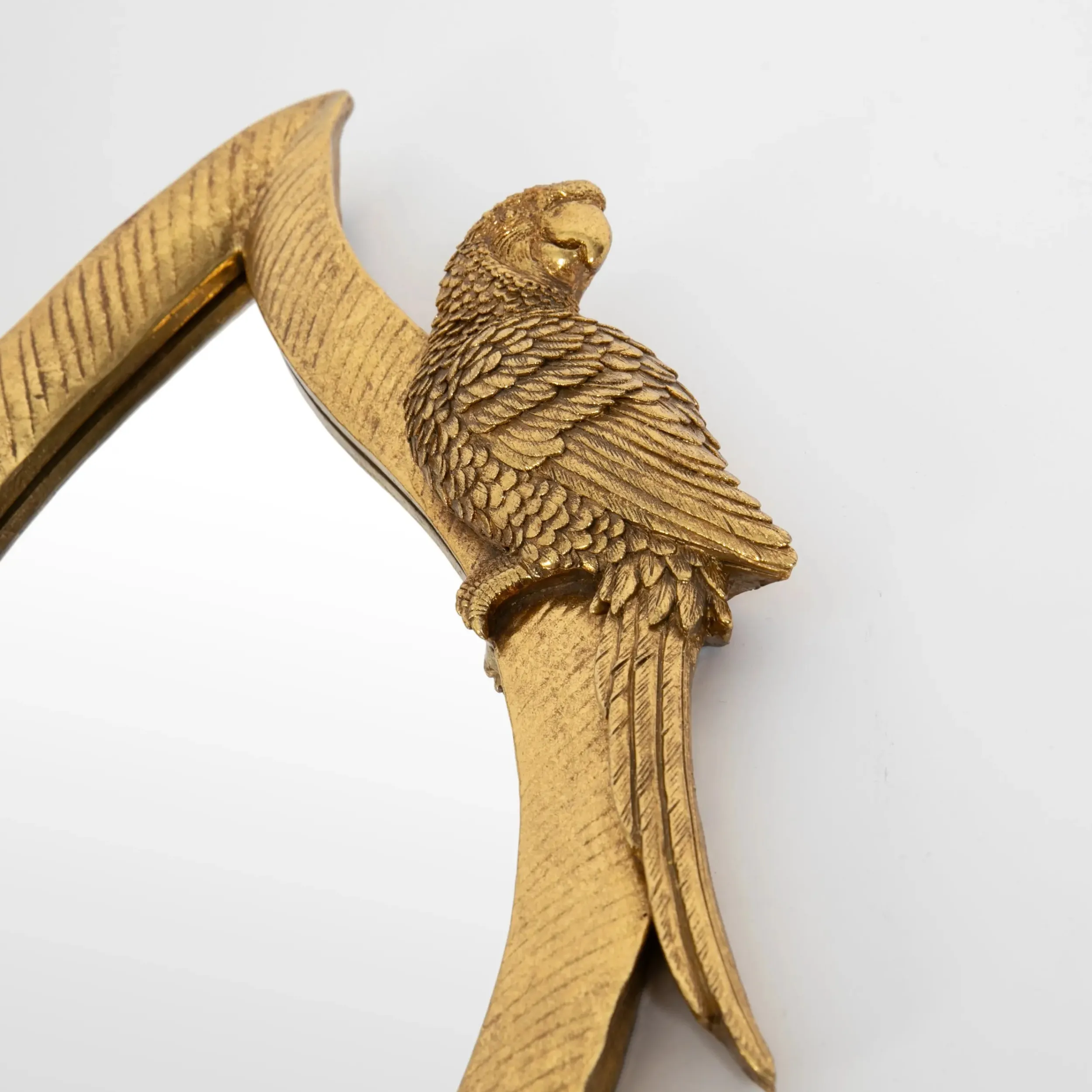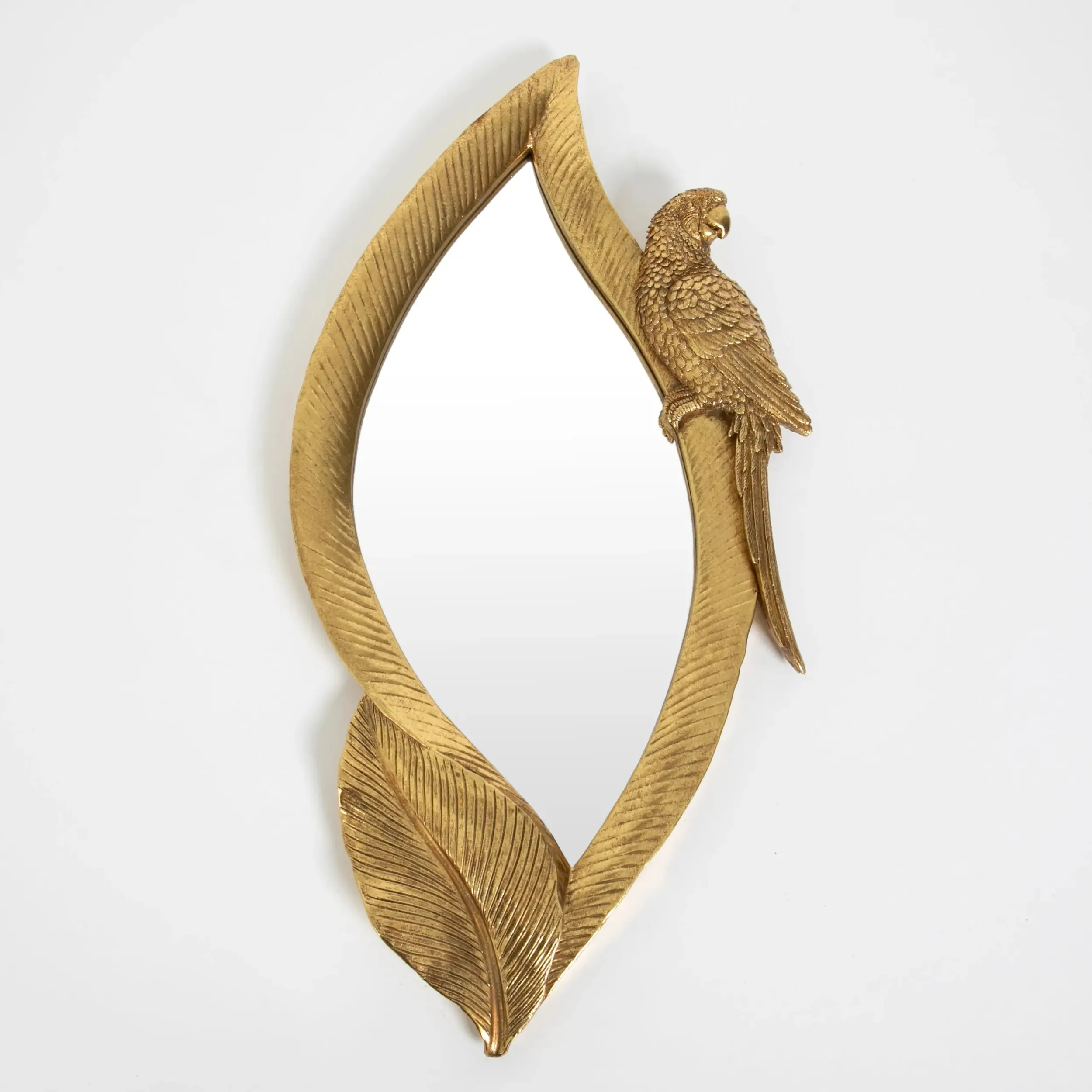 Update your Wall Mirror selection with this striking, teardrop shaped mirror encased in an opulent, textural golden frame featuring tropical bird and palm design. Crafted from resin, this piece is lightweight, durable and easy to clean.