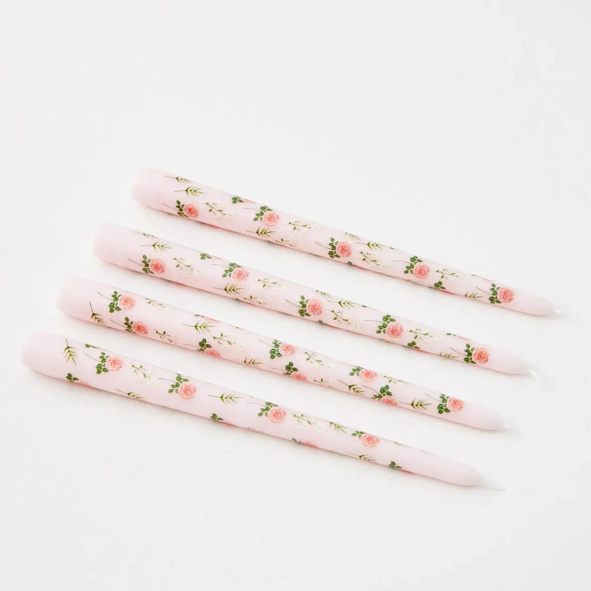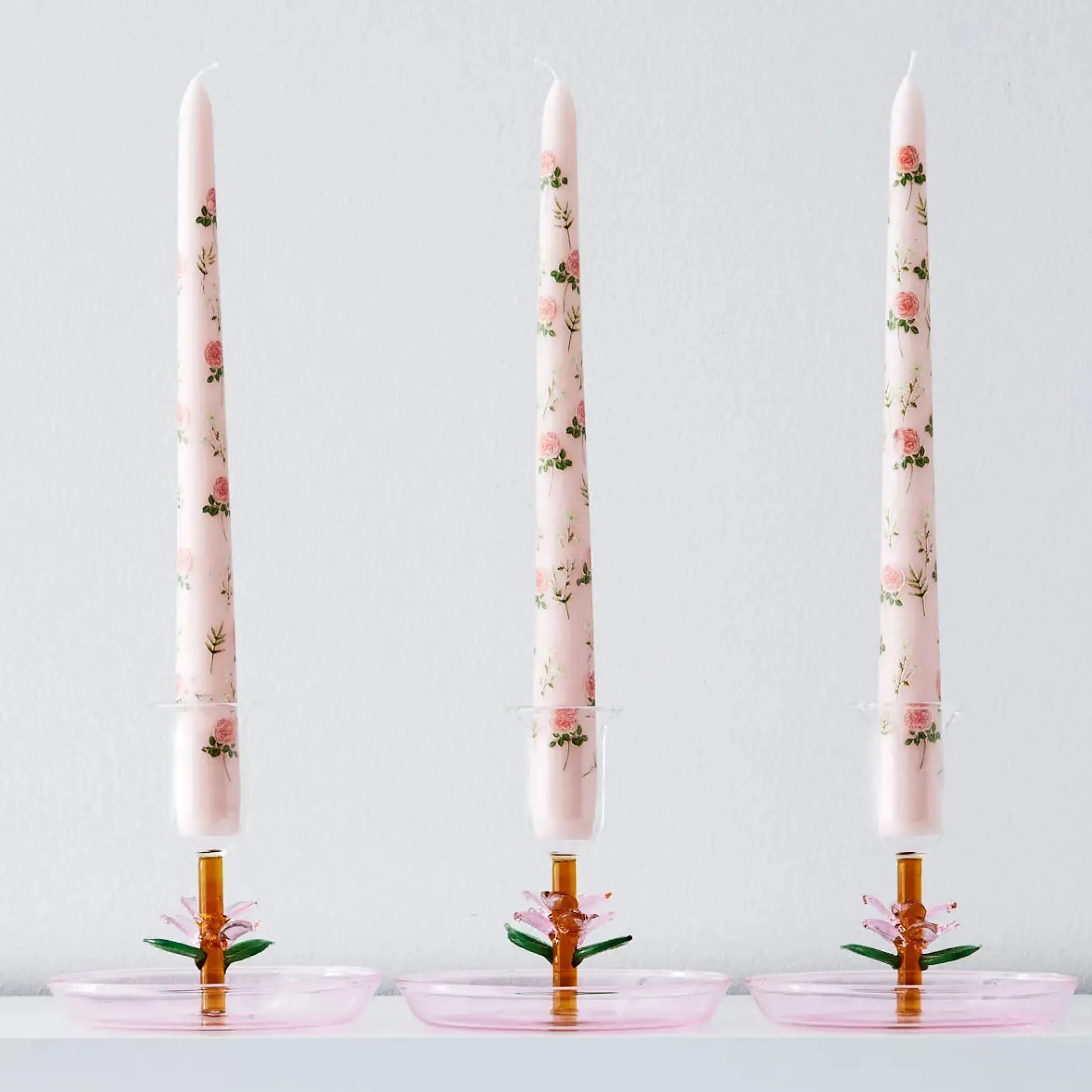 Add bright candlelight to your home with dainty floral printed Taper Candle set
