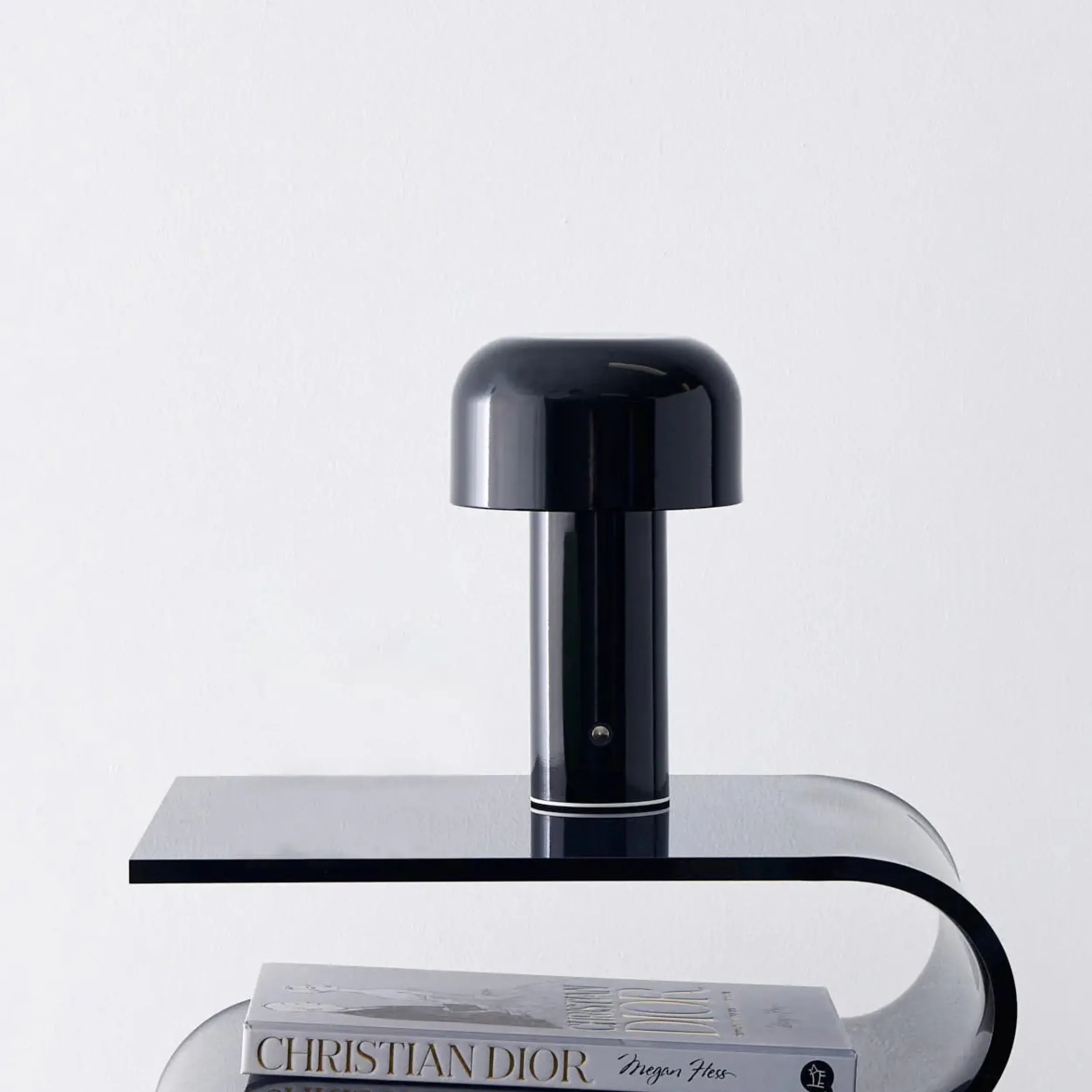 Instantly add a hit of Mid-Century design with this tactile, high-gloss lacquered metal Touch Lamp in statement black.
