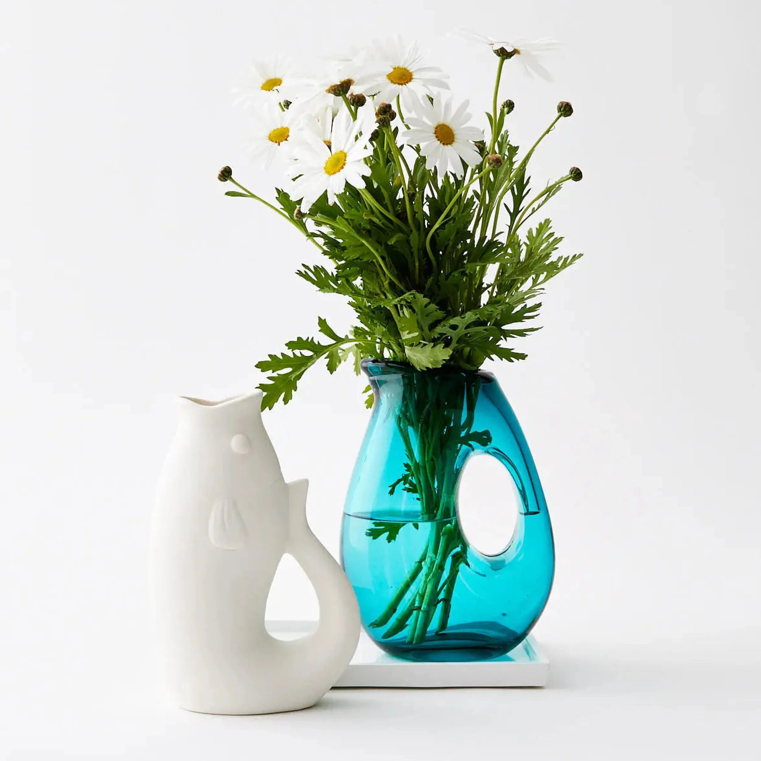 Your plants will pop against the vivid ocean blue of this tinted Glass Jug with ergonomic pourer and easy to hold handle. Clever multi-functional design works as a vase, carafe or drinking jug.