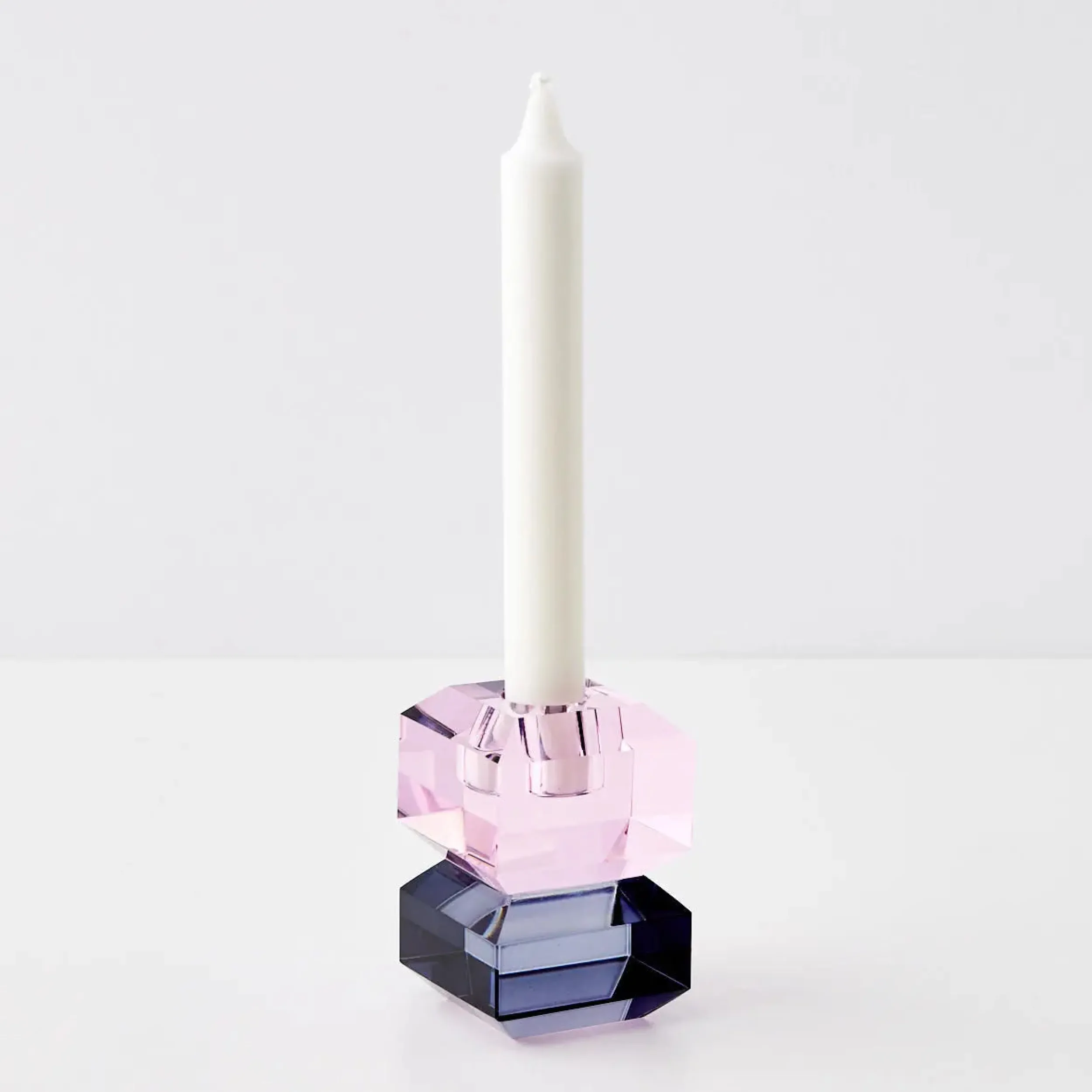 Edgy Crystal Taper Candle Holder Smoke Pink | GigiandTom Sale