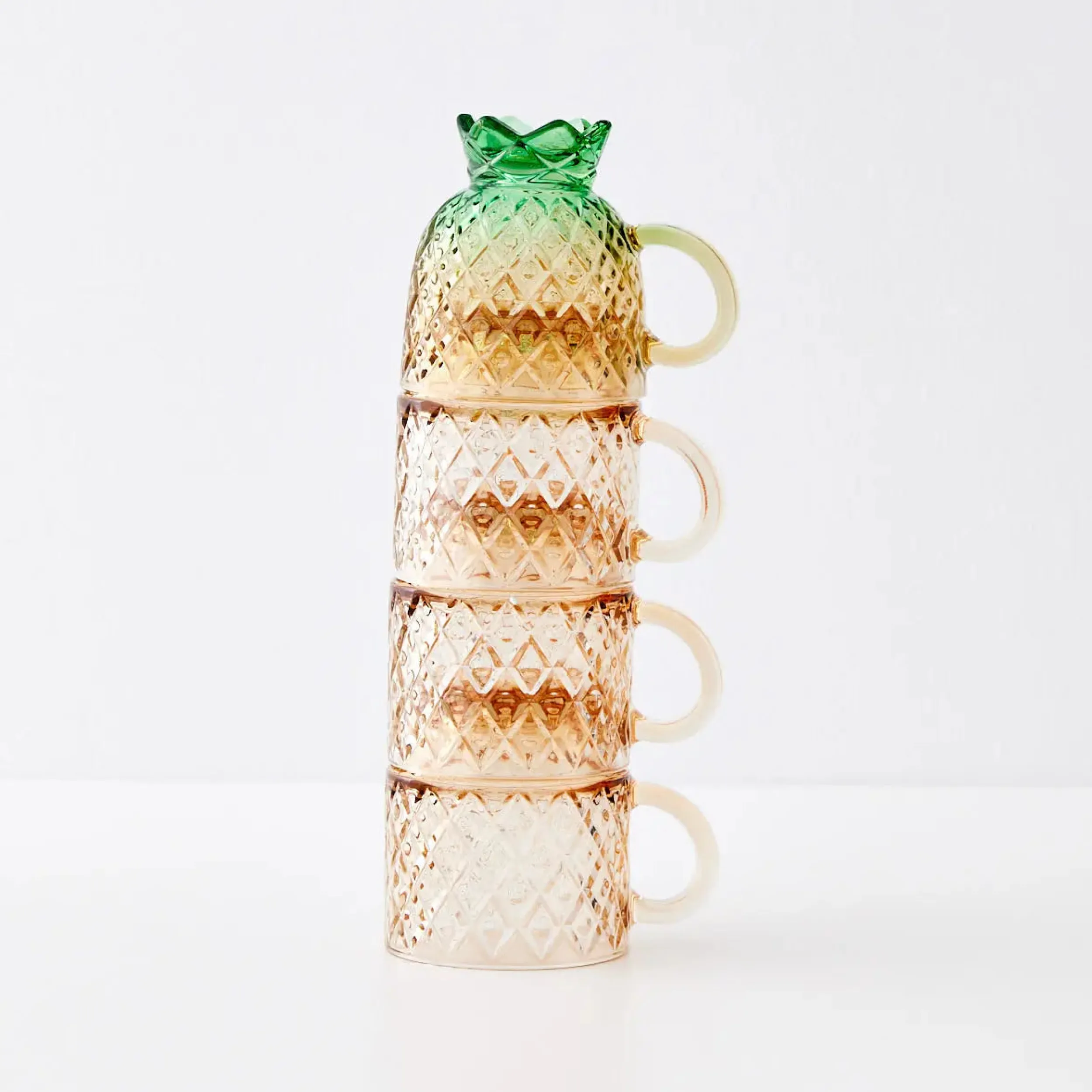 Pining for a taste of the tropics? This fruity Carafe and Tumbler set will have you dreaming of beachside refreshments with a set of four stackable glass tumblers and pineapple shaped carafe.