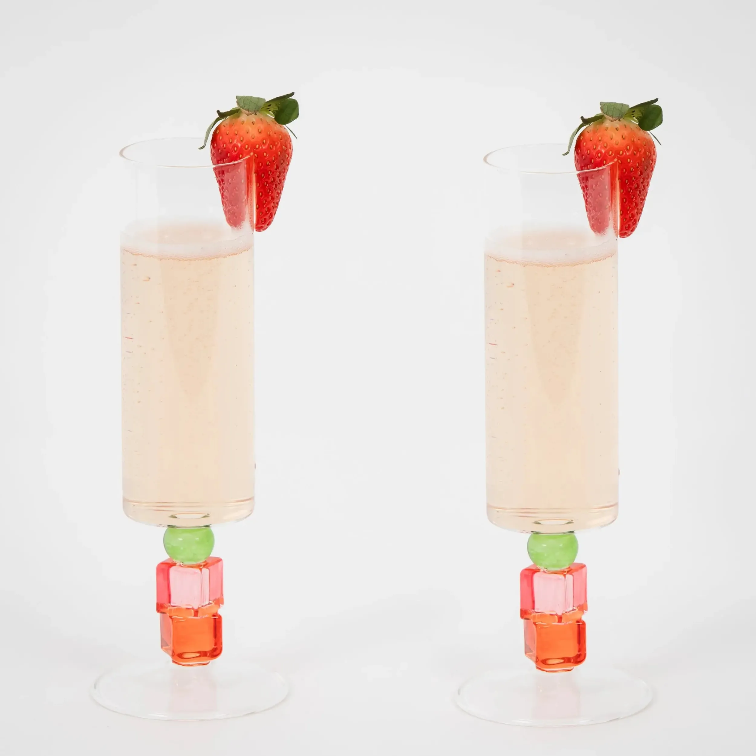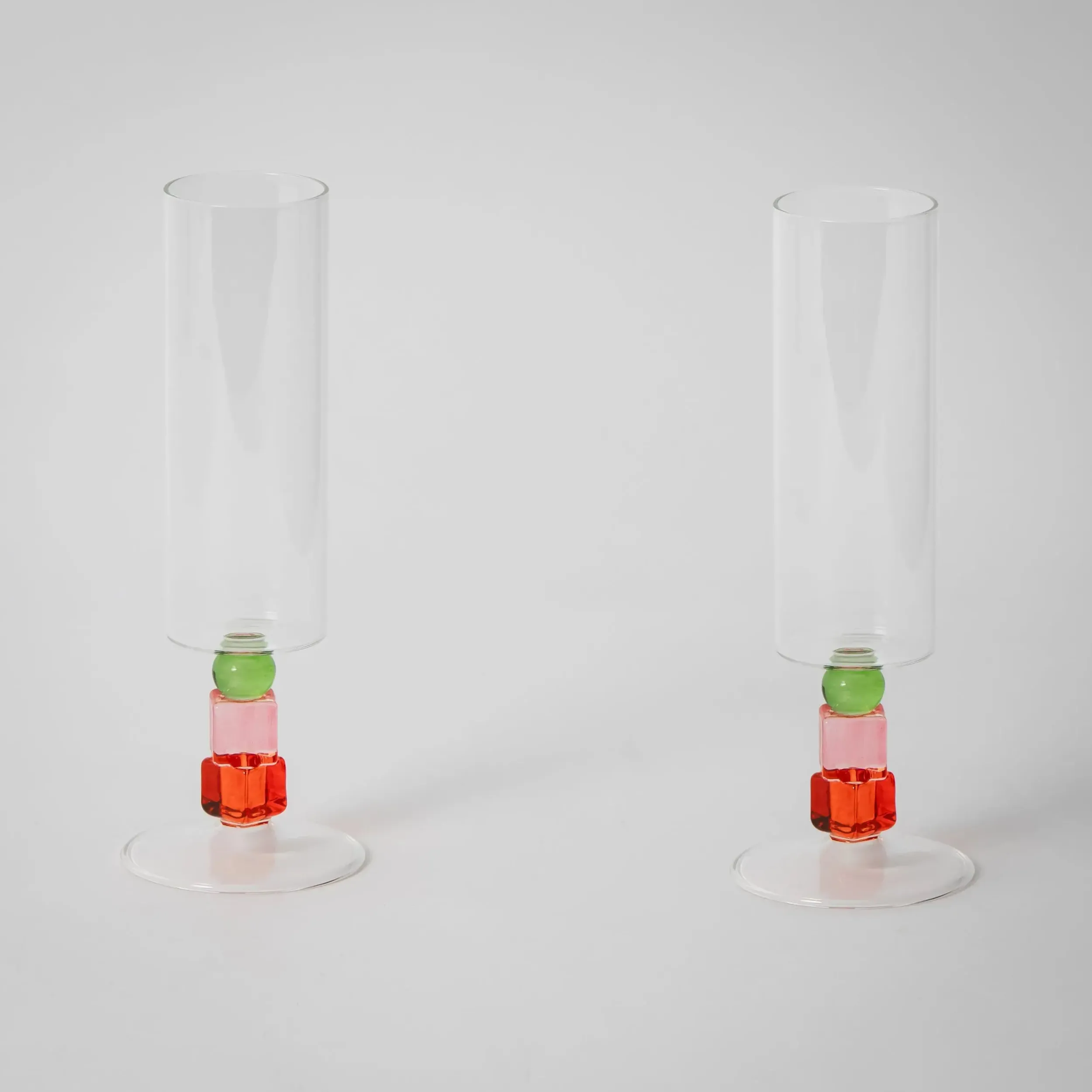 Sip from a gorgeous Cocktail Glass set inspired by precious gemstones in this tall set of 2 champagne flutes with striking coloured glass stem. An instant enhancement to dinner parties and celebrations.