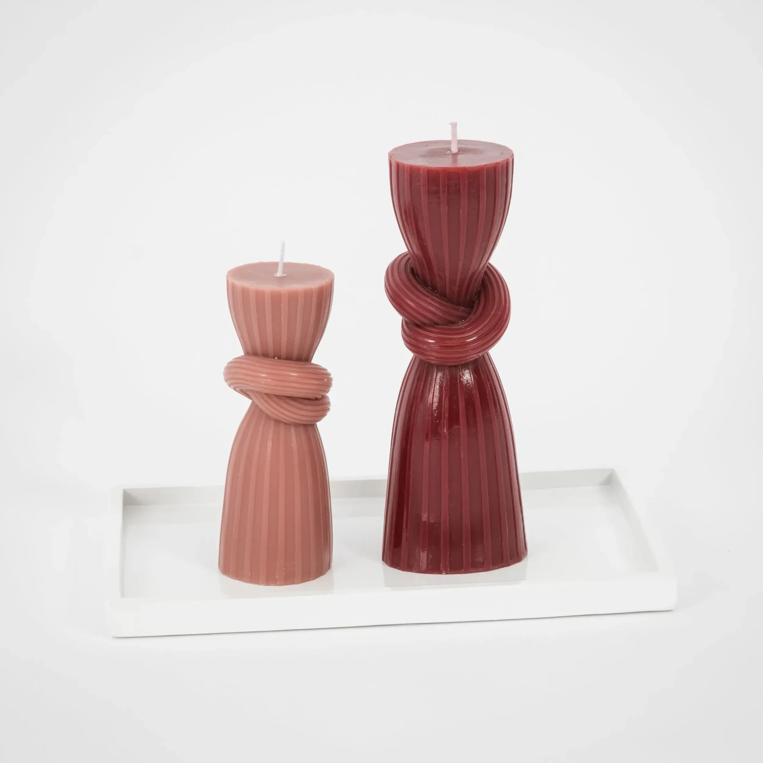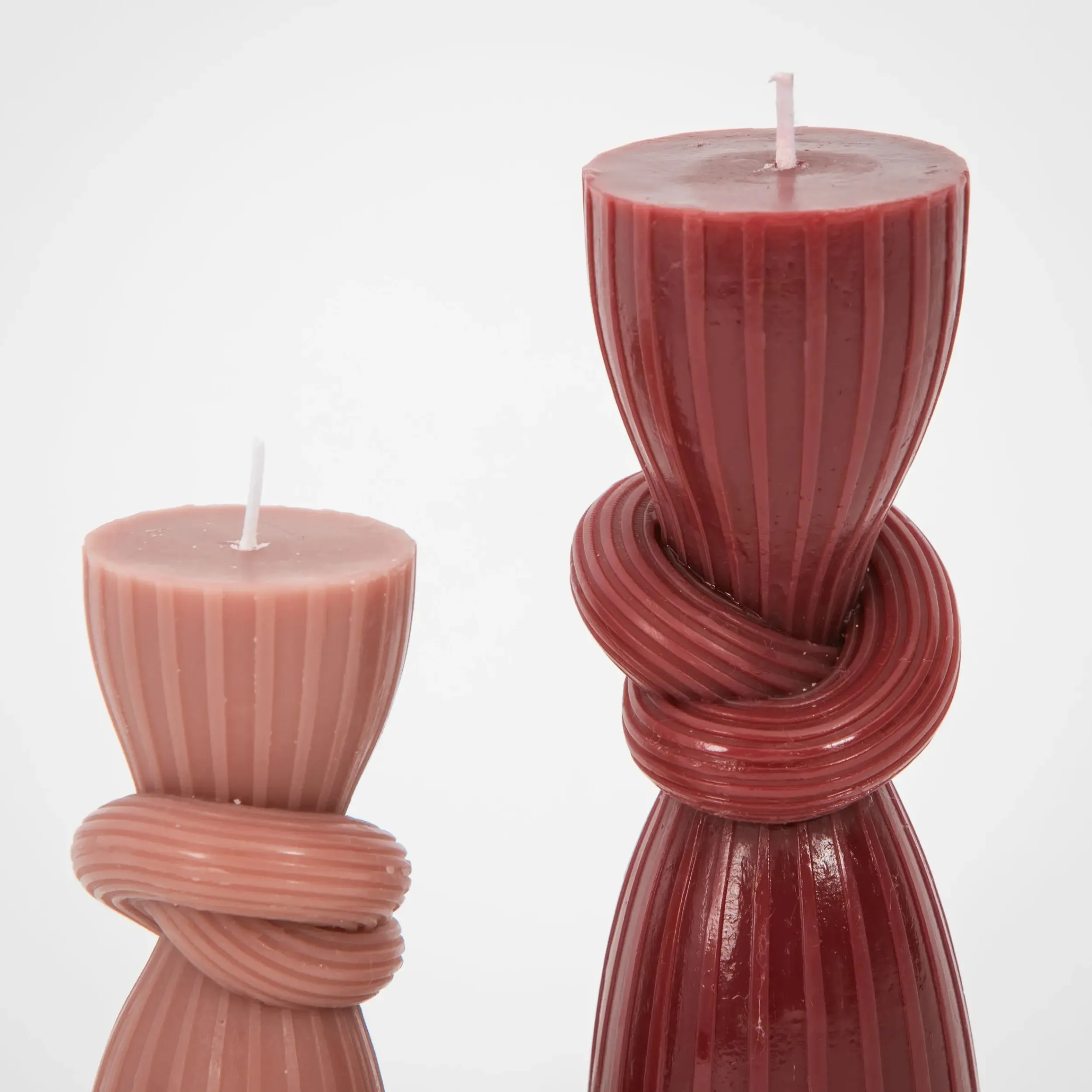Prepare to be tongue-tied and twisted over these architecturally stunning Pillar Candle set of two in two varying heights and delicate dusty rose shades. Style together or separately to maximise candle glow.