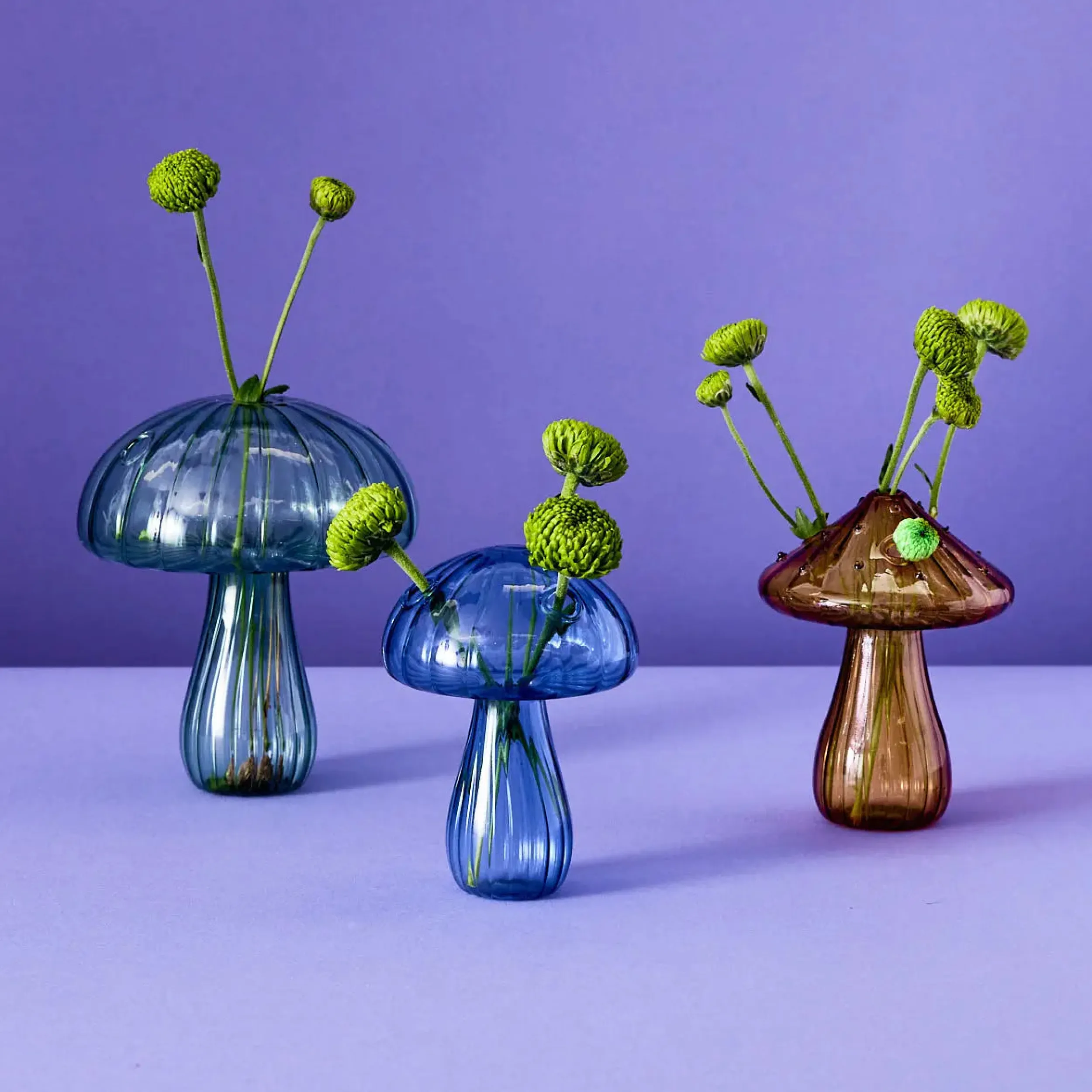 Our delicate mushroom-shaped Coloured Glass Vase range is designed straight from the forest floor into your home. Meticulously crafted from premium quality glass, these sweet vases with lifelike details make a whimsical addition to your interiors.