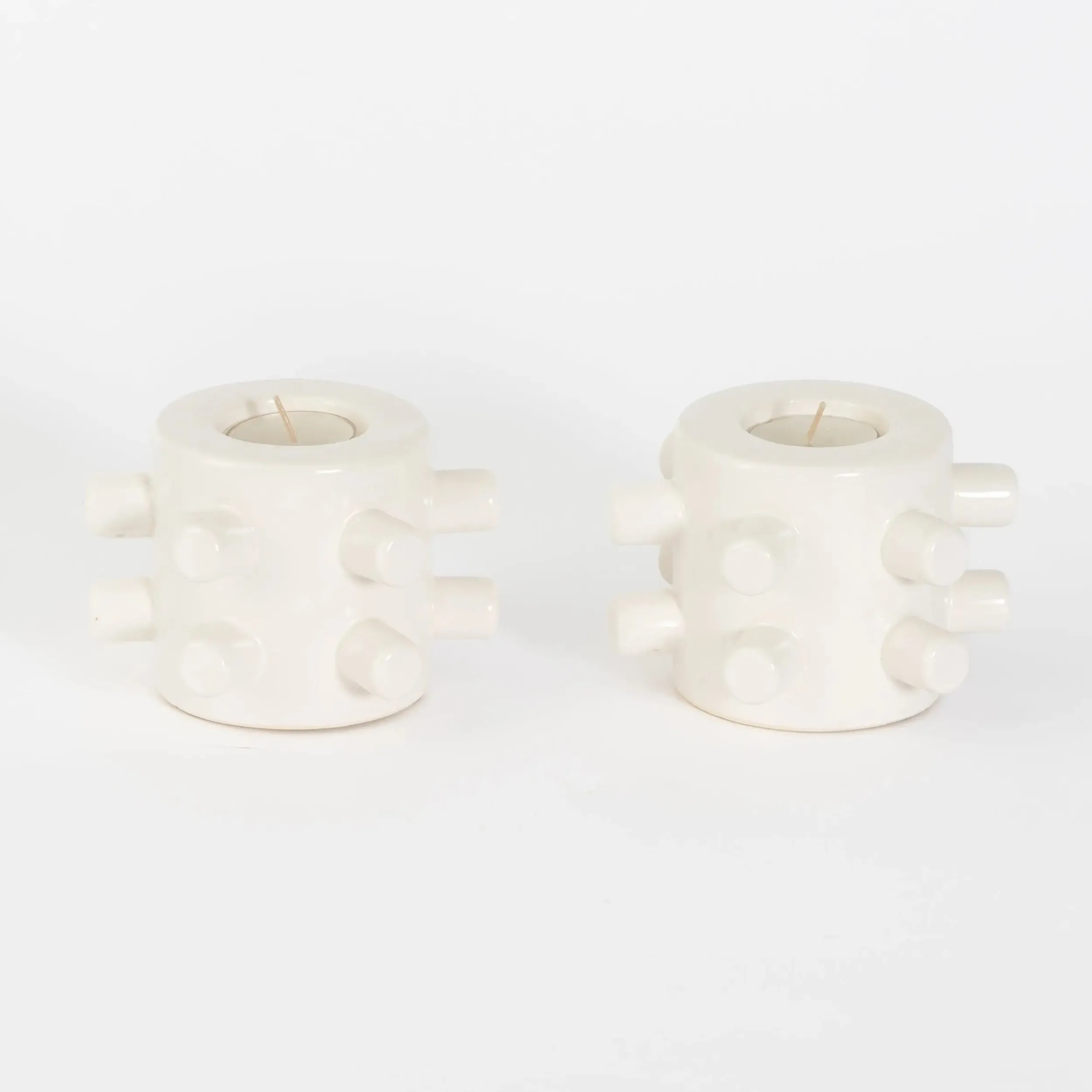 Notch Ceramic Tealight Candle Holder Set of 2 White | GigiandTom Outlet