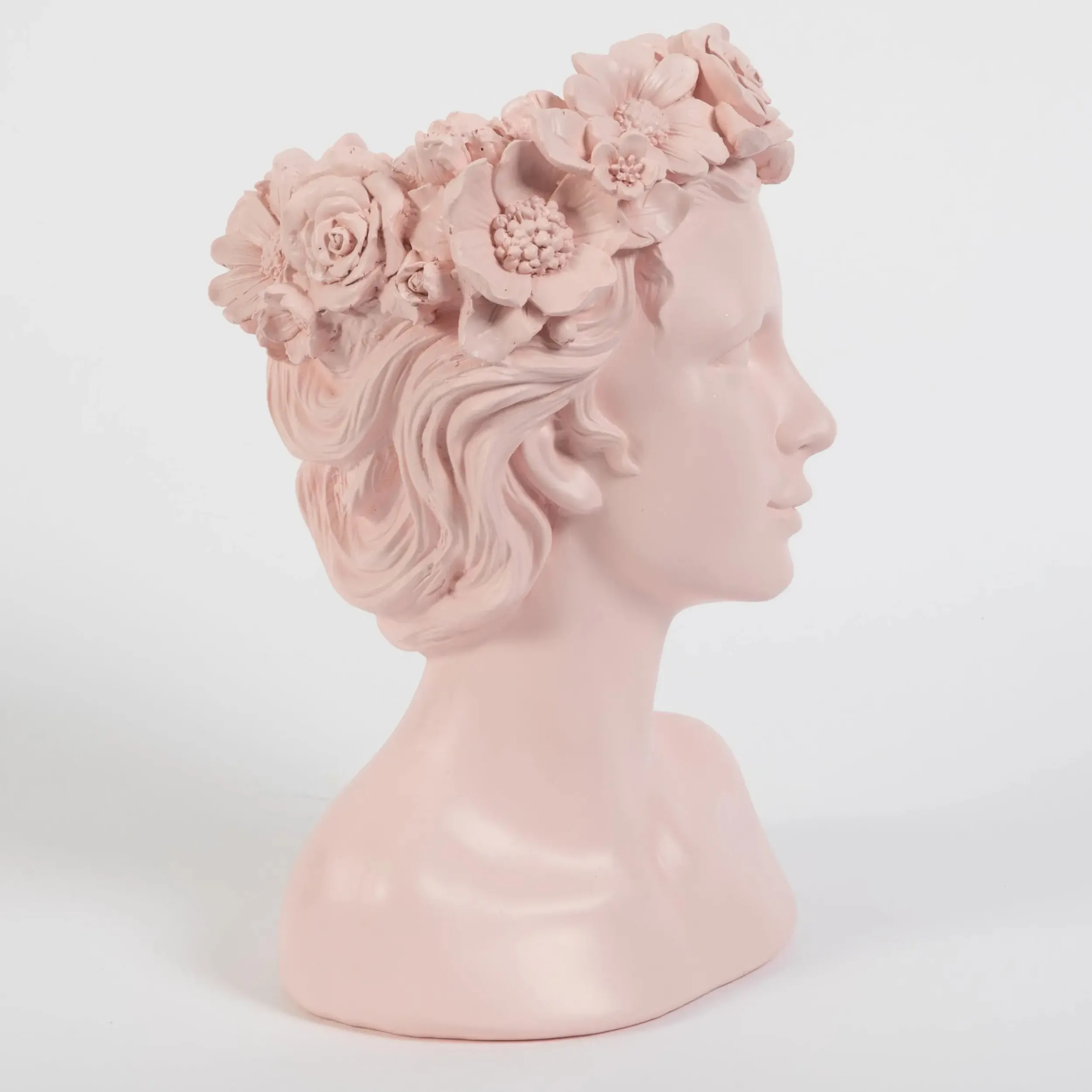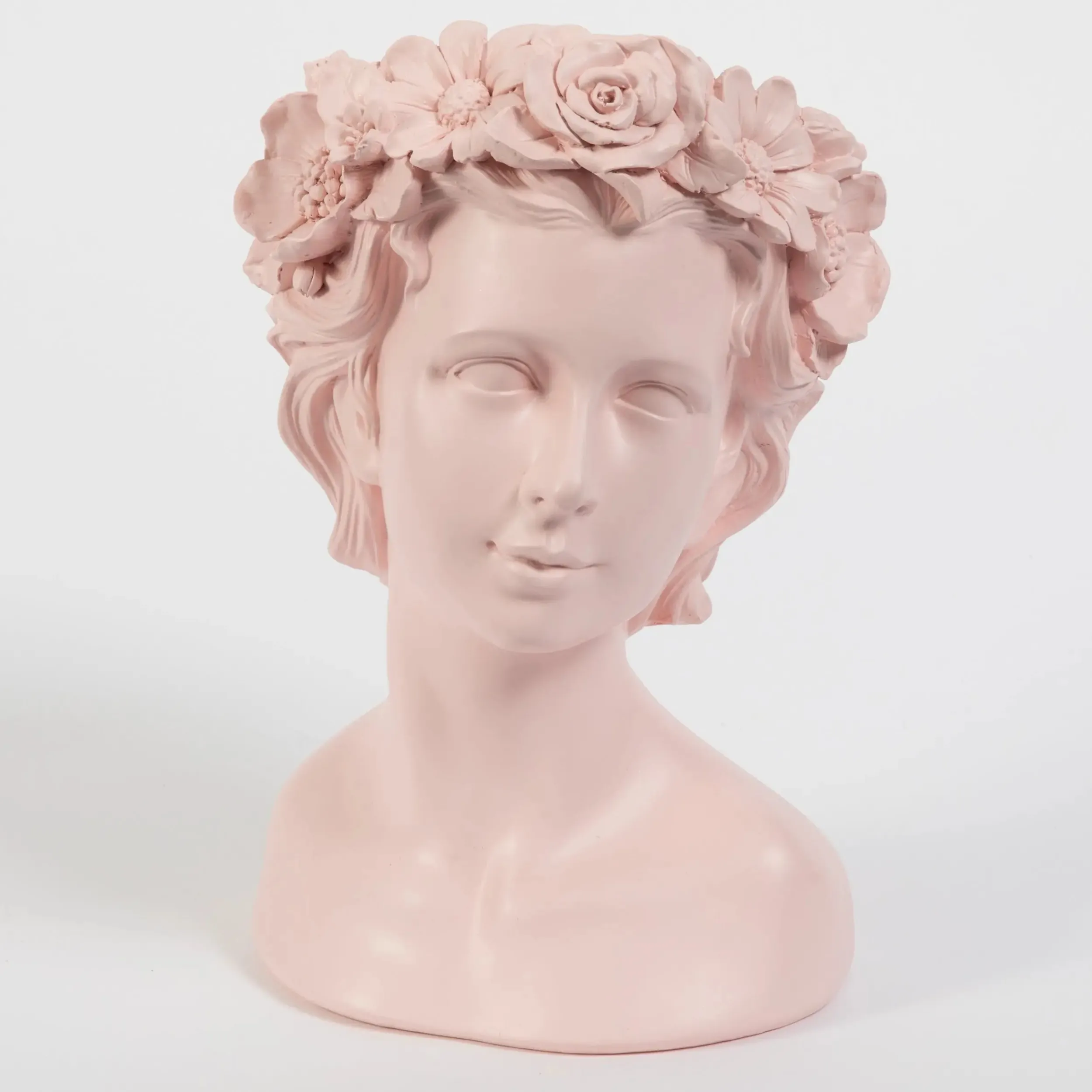Inspired by the artistic sculptures of the Renaissance era, this lightweight yet durable soft pink Resin Vase bust adds a soft, modern update to classical art pieces. Style as is, use as a planter pot or fill with fruit as a serving bowl; the options are endless.