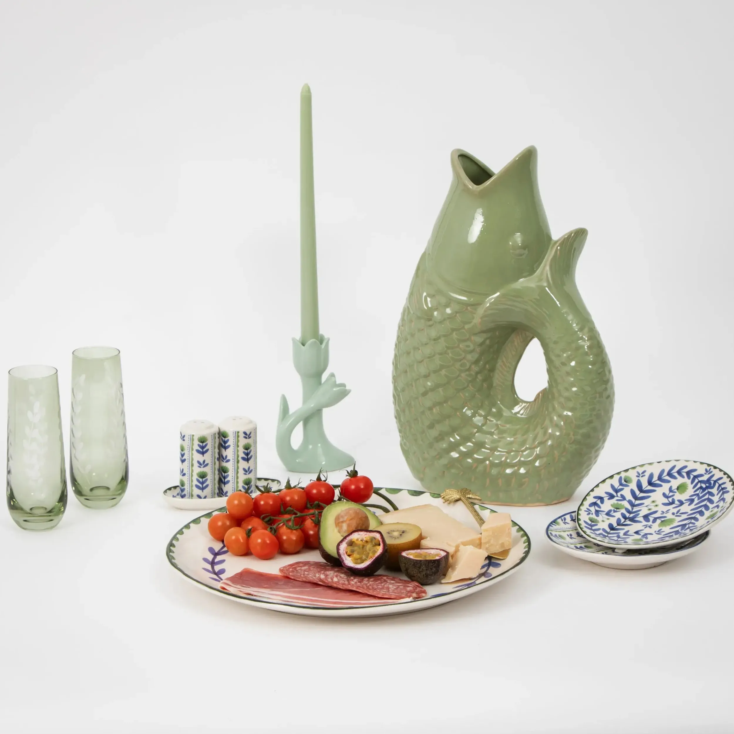 Perfect for large share platters, tapas, appetisers and summer salads; this ceramic paisley printed blue, white and green Serving Plate adds a fresh take on vintage inspired tableware.