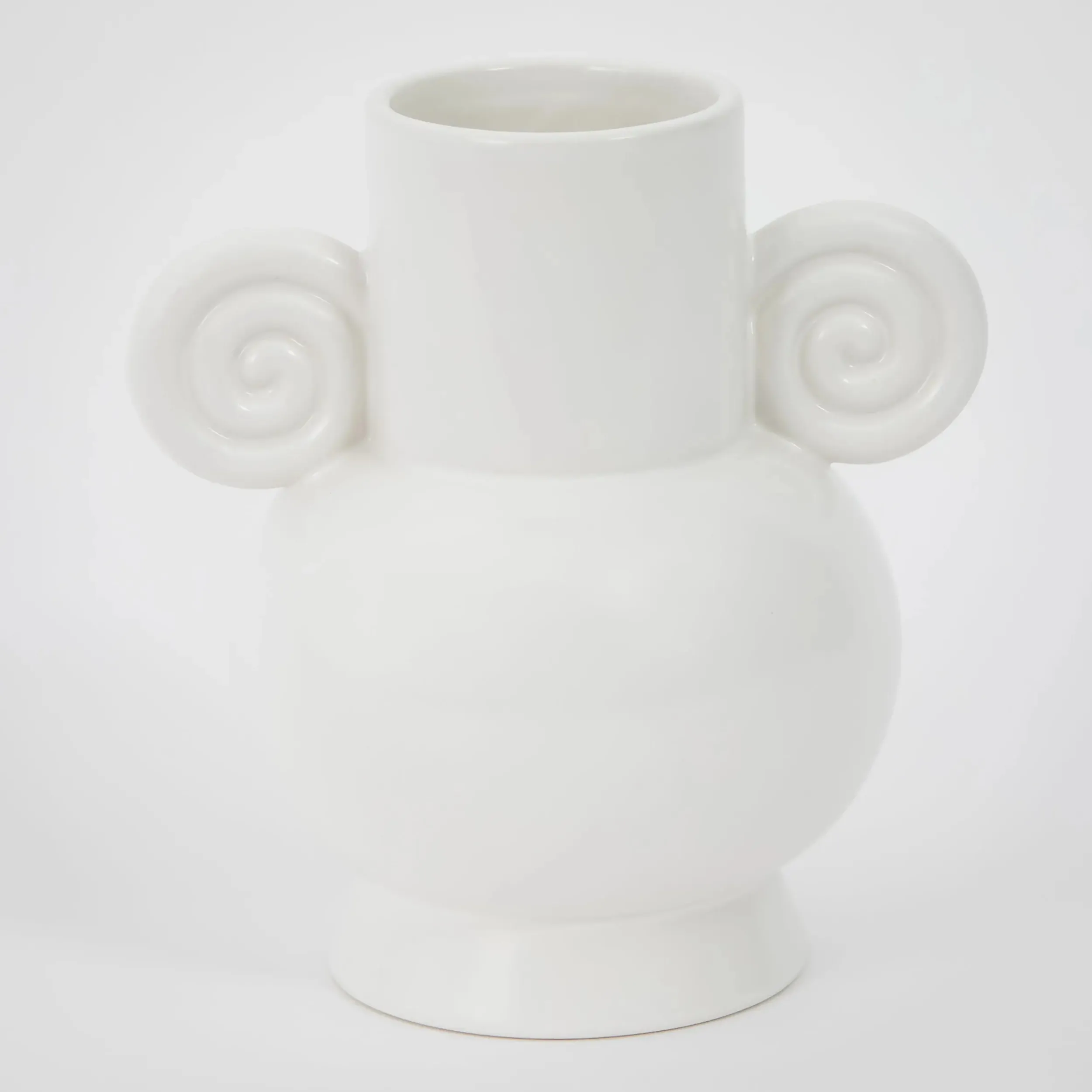 Crisp, cool white ceramic has been masterfully sculpted into a Grecian urn-inspired shape in this satin-finish Ceramic Vase or sculptural piece that pairs well against most colour palettes.