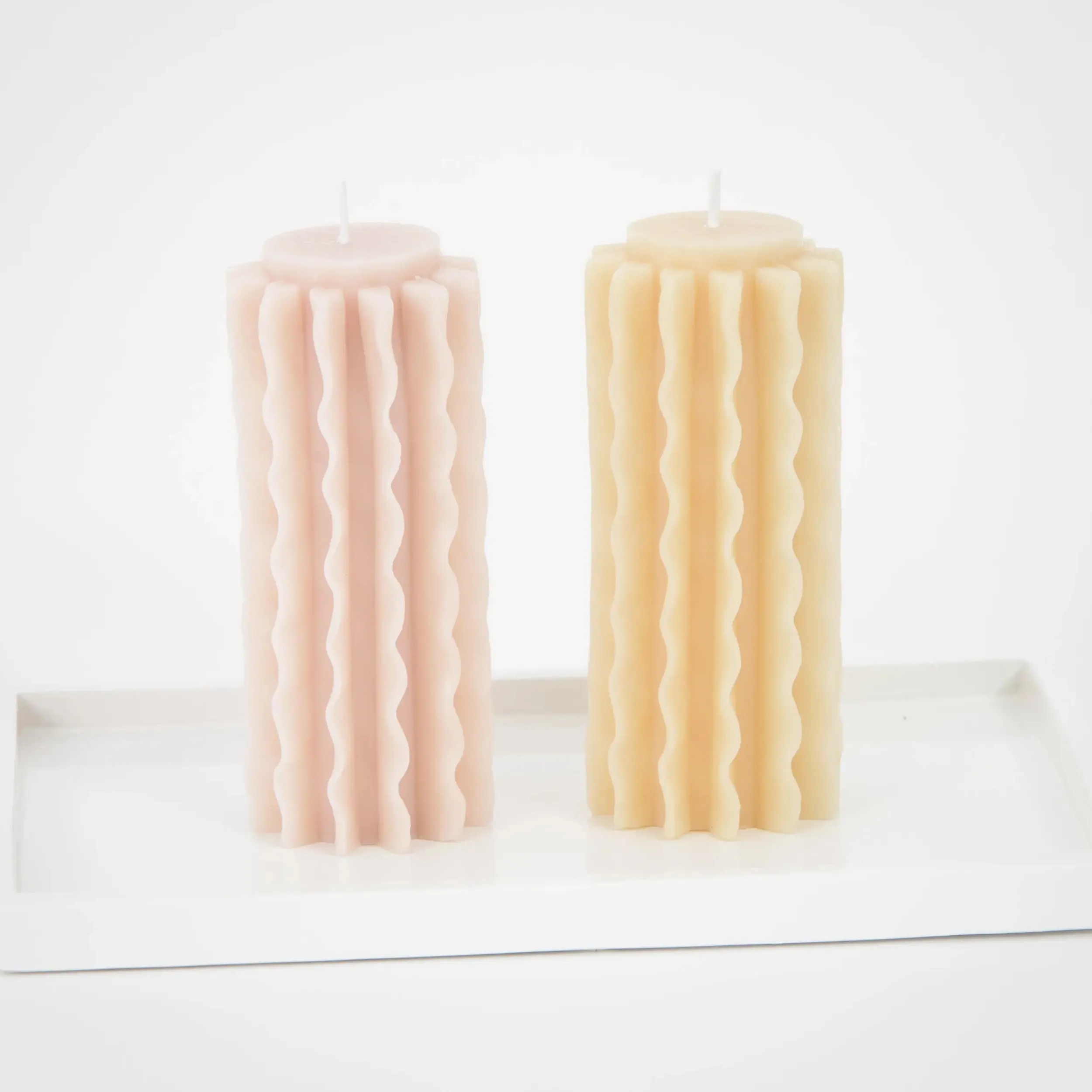 Romantic Ripple Pillar Candle Assorted 2 Pack Pastels | GigiandTom Sale