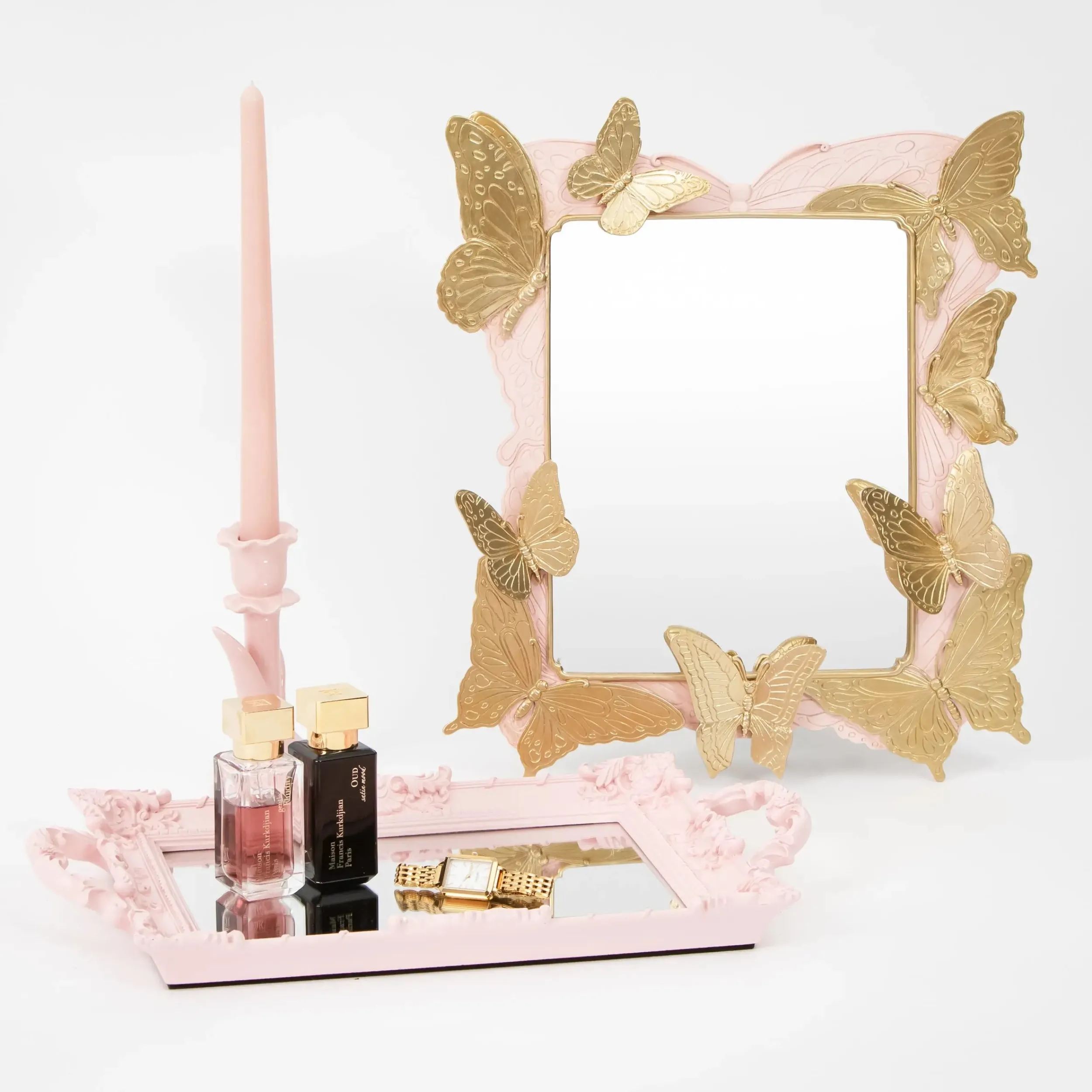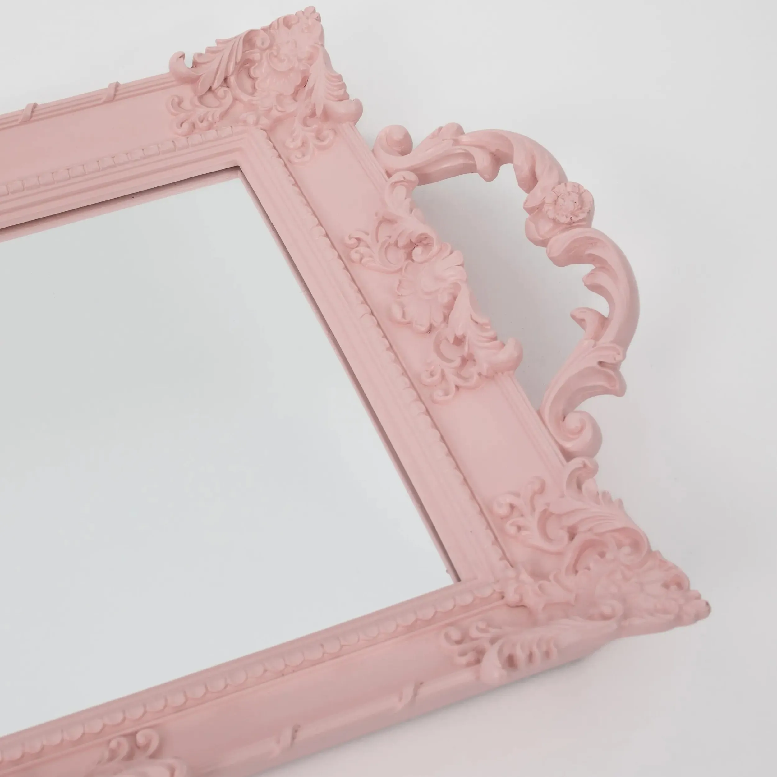 Hark back to Regency era England with this ornate framed and mirrored Resin Decorative Tray featuring intricately moulded architrave and rosette border in feminine pastel pink, adding feminine style to interiors.