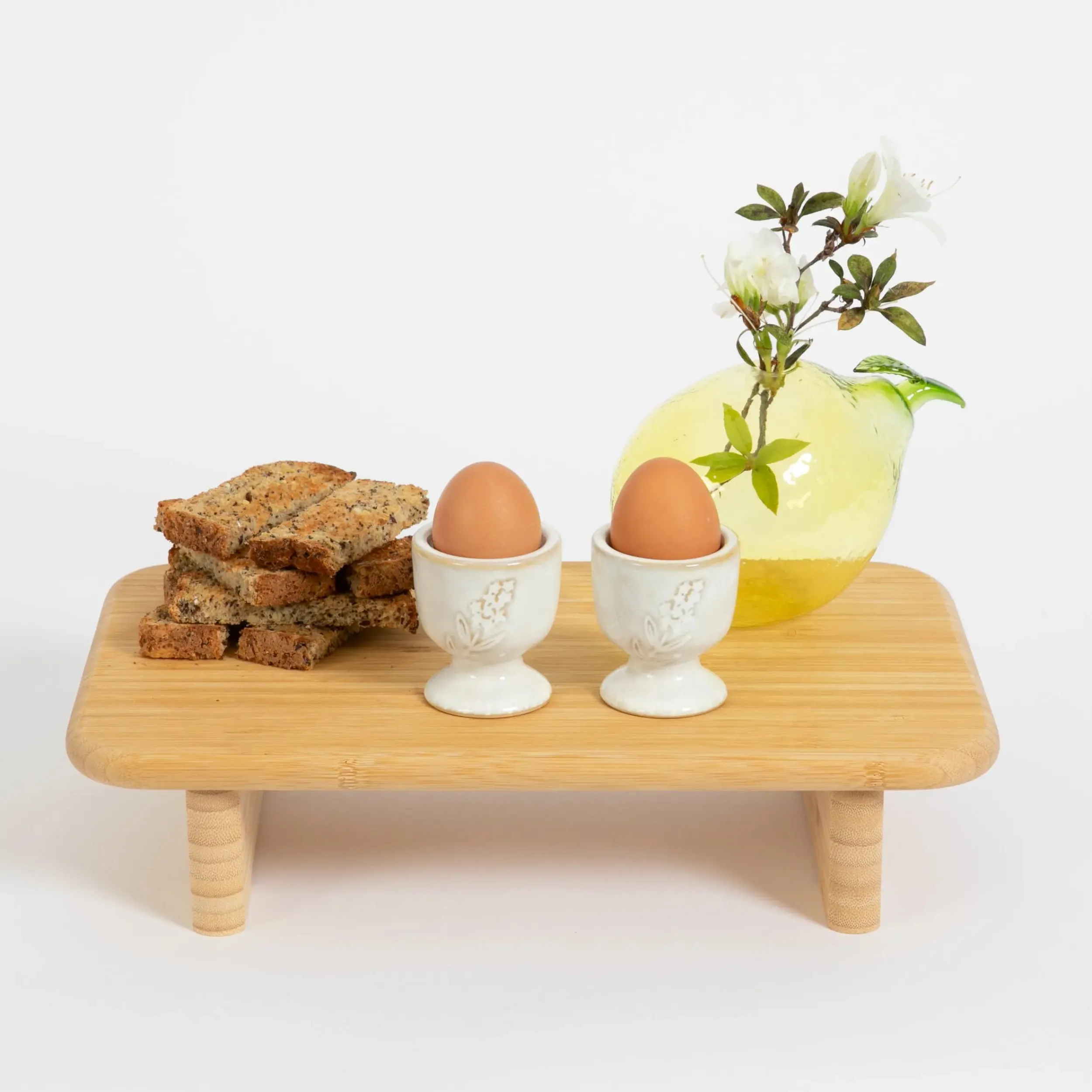 Keep your ooey gooey boiled eggs sitting tight and upright with a Ceramic Egg Cup set