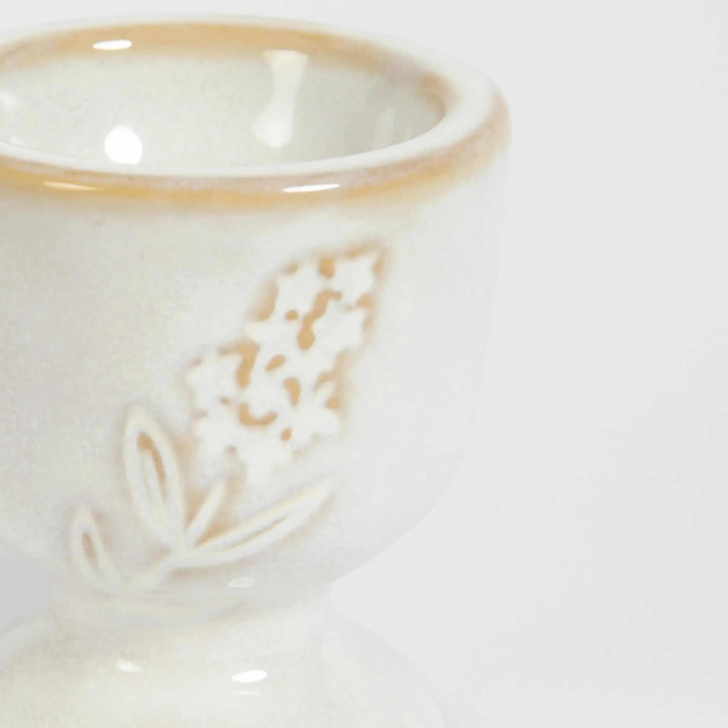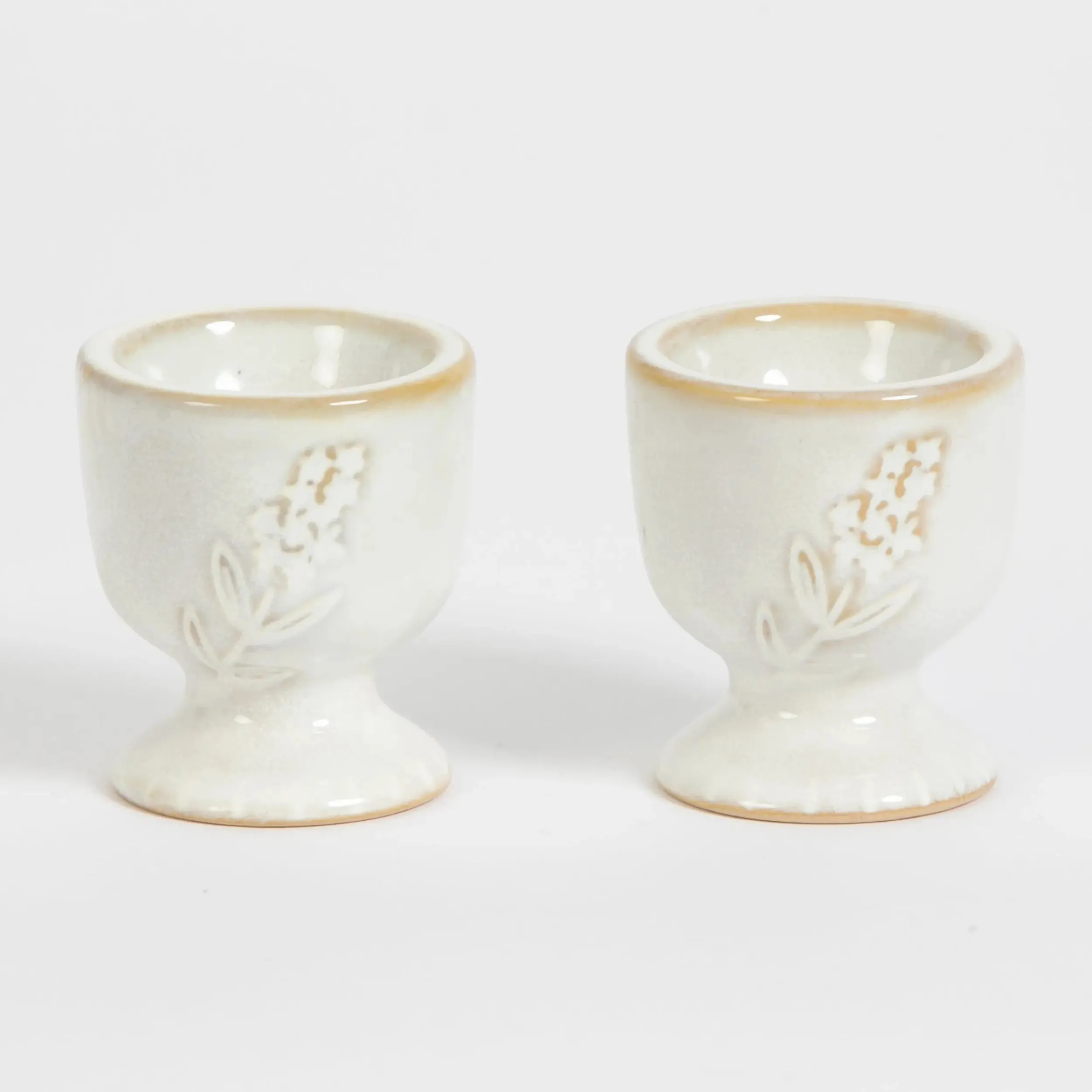 Soldier into a breakfast of champions with this sweet ceramic Egg Cup set with a rustic glazed finish in neutral beige ceramic with delicate floral motif. Get boiling now!