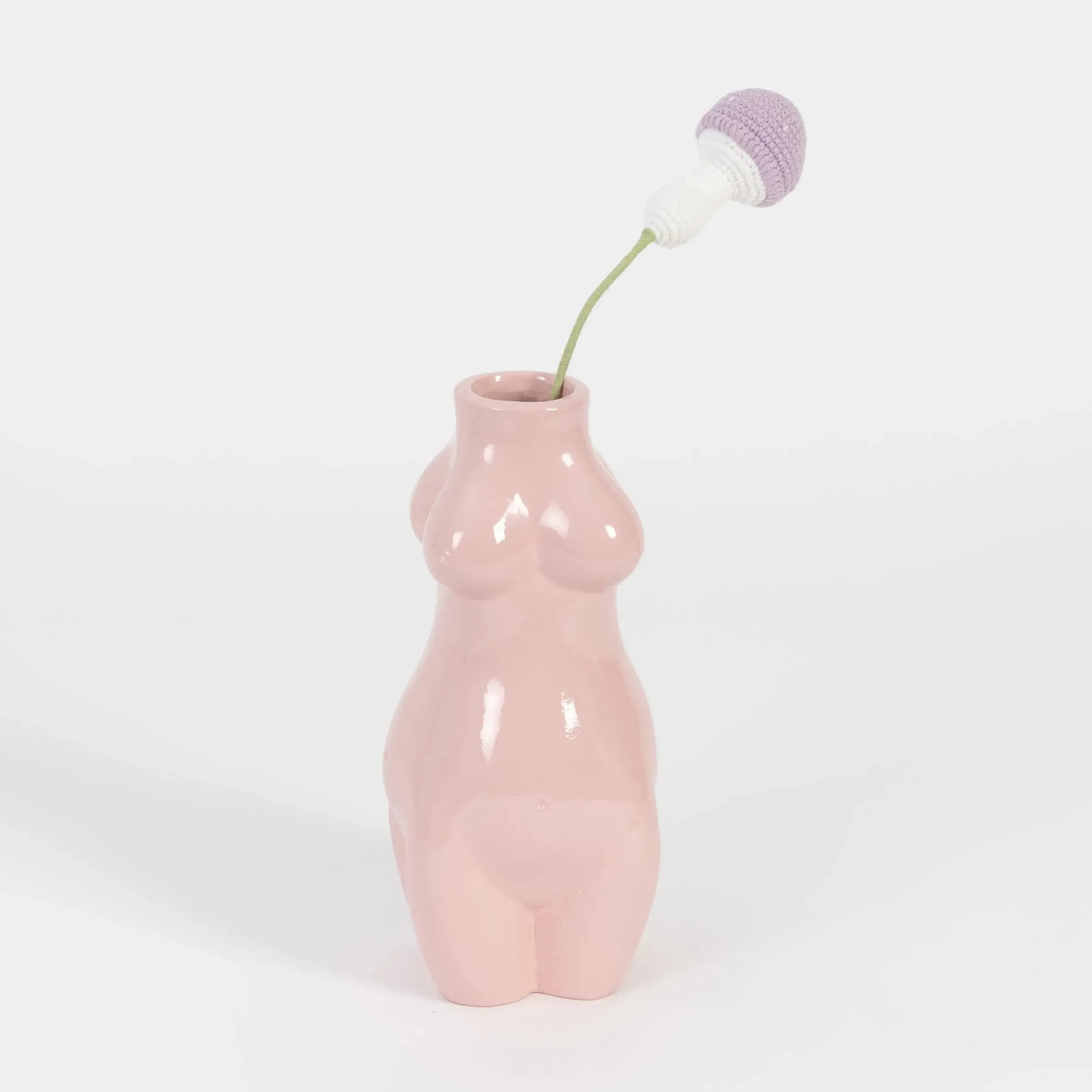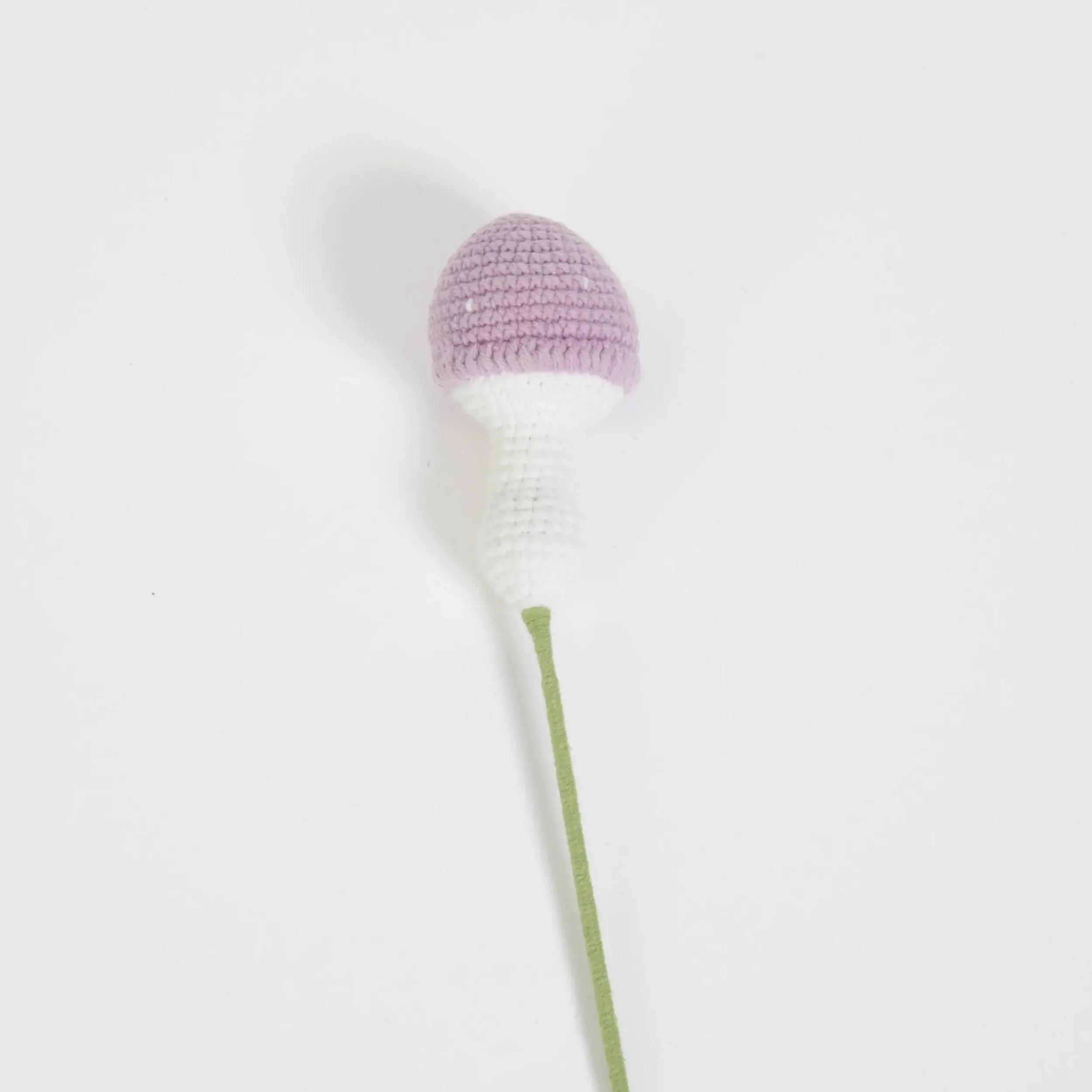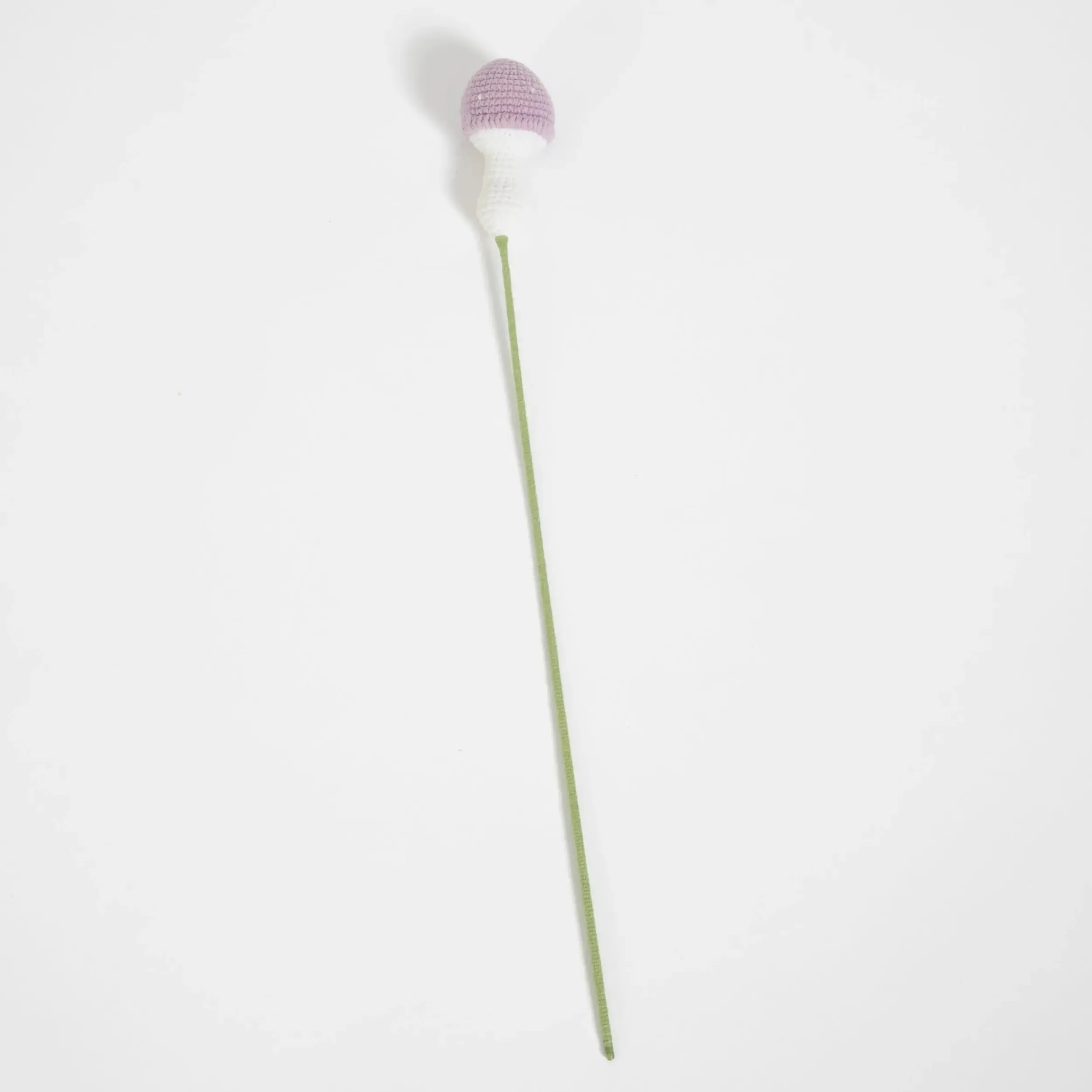 Channeling whimsical forests and fairy-inspired ethereal décor, this hand knitted Crochet Mushroom in delicate violet adds everlasting joy to vases and home décor.